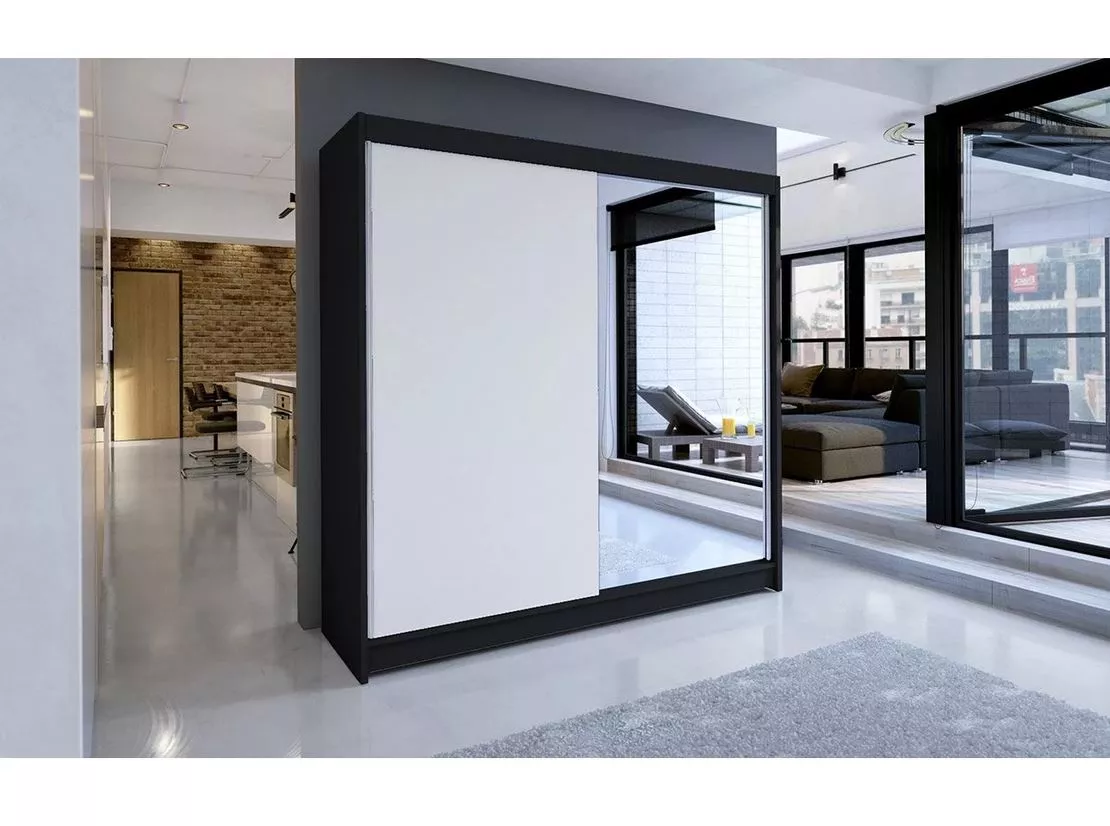 Šatní skříň se zrcadlem 180 cm VILMA 1 - černá / bílá