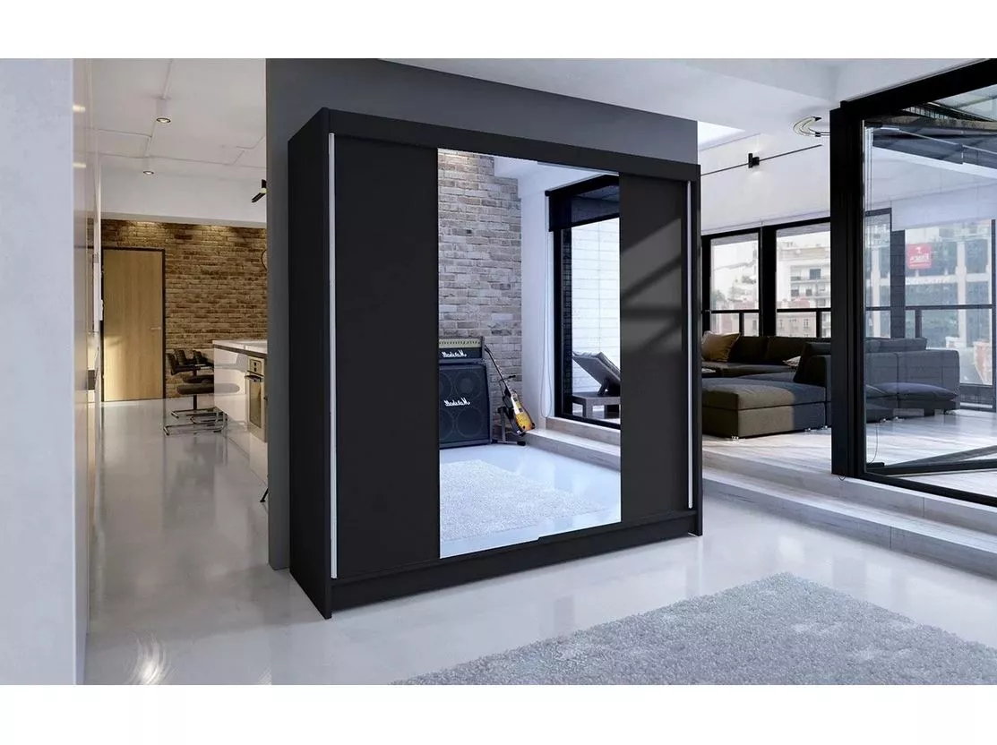 Velká šatní skříň 180 cm se zrcadlem VILMA 2 - černá