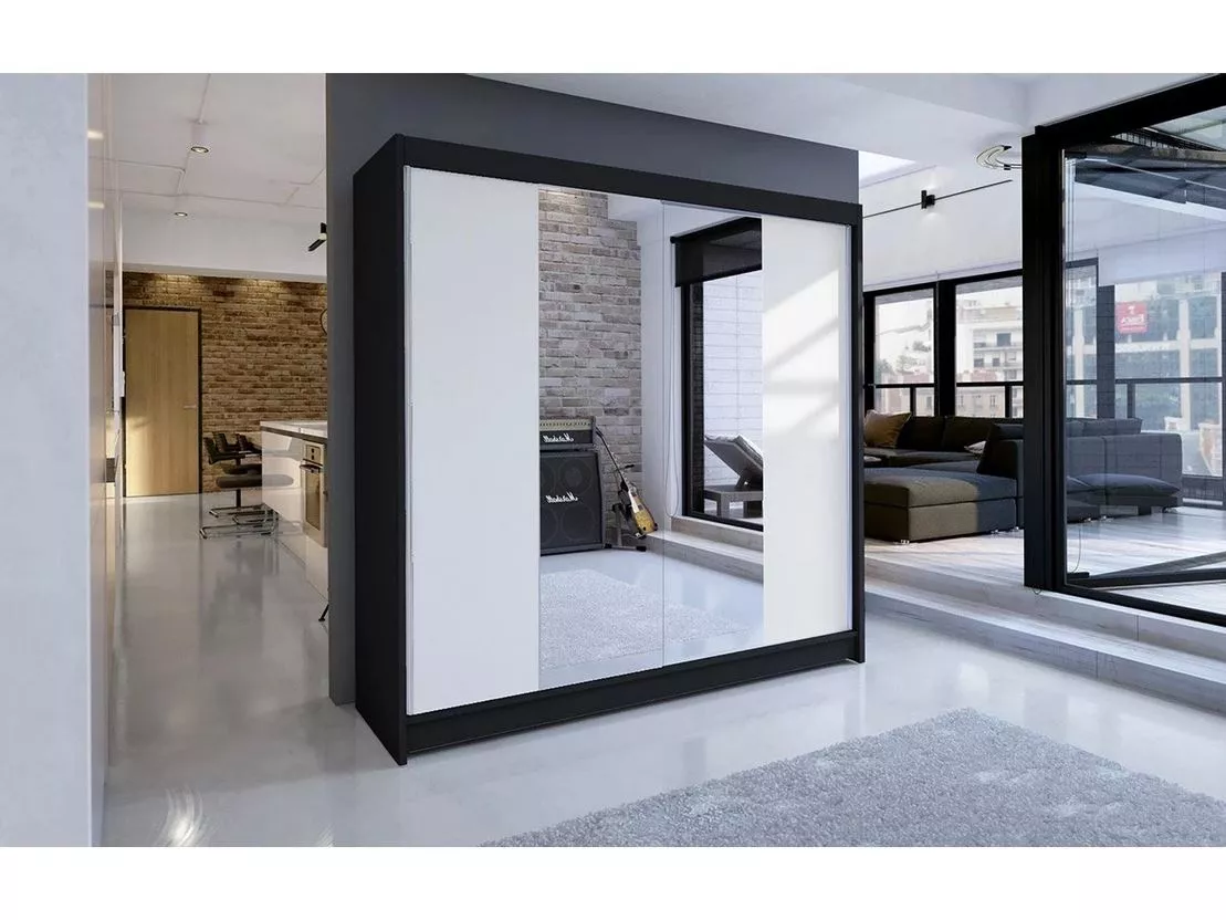 Velká šatní skříň 180 cm se zrcadlem VILMA 2 - černá / bílá