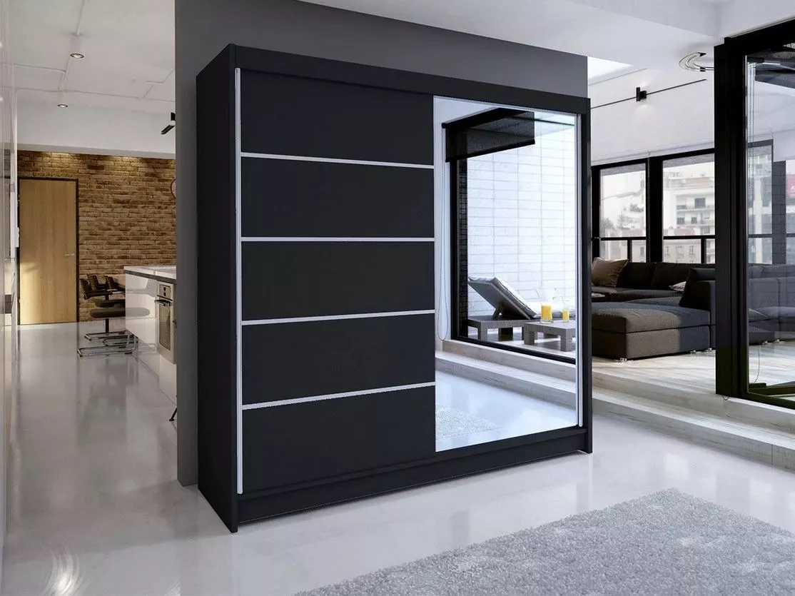 Vysoká šatní skříň 180 cm se zrcadlem VILMA 3 - černá