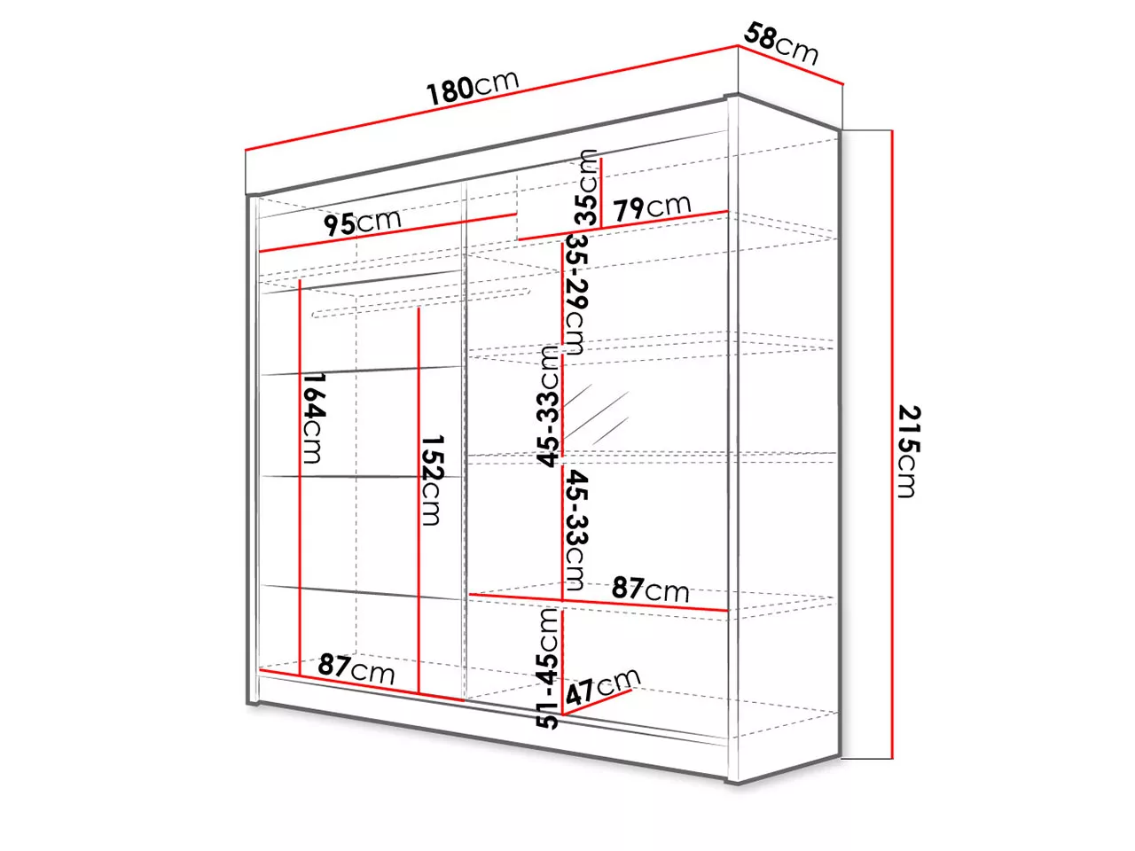 Velká šatní skříň VILMA 3 jistě upoutá pozornost každého, kdo hledá funkční a stylové řešení do své ložnice. Vnitřek skříně ukrývá šatní tyč na zavěšení oblečení a hluboké police. Zrcadlo opticky zvětšuje prostor a pozitivně ovlivňuje komfort užívání.
