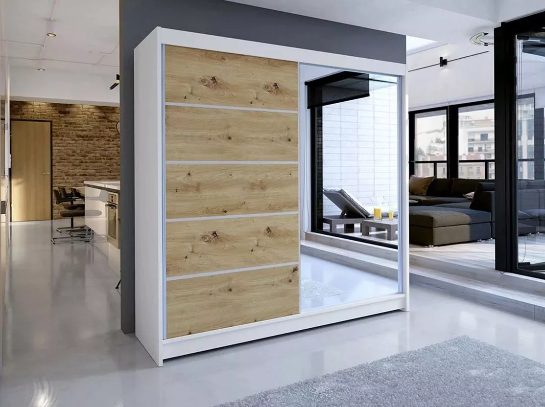 Vysoká šatní skříň 180 cm se zrcadlem VILMA 3 - dub artisan / bílá
