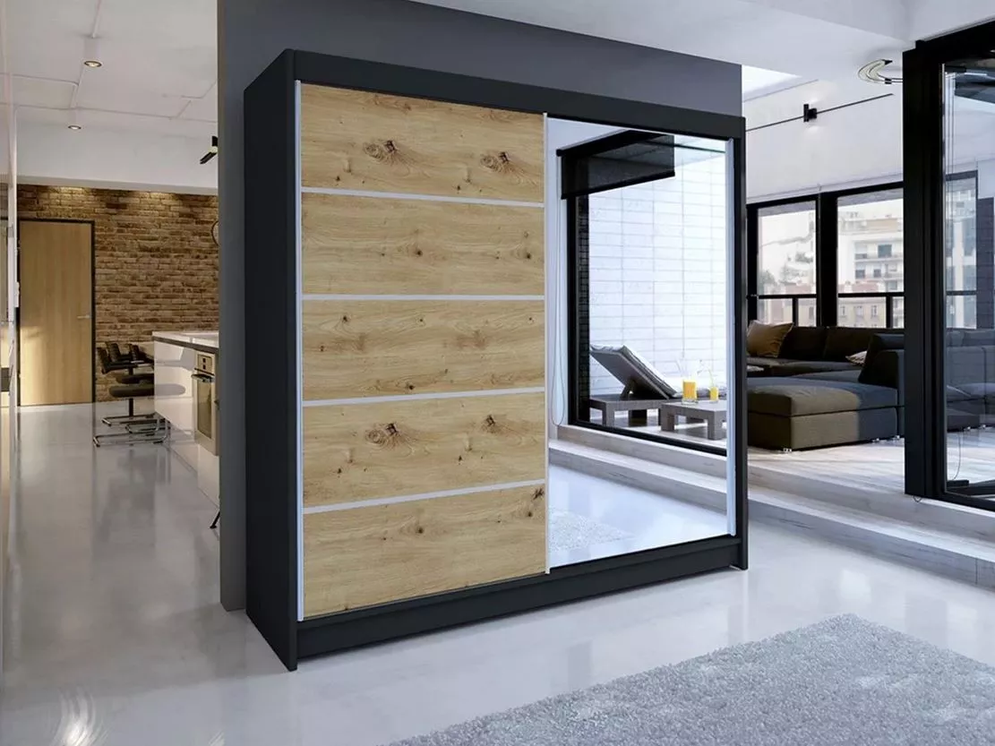 Vysoká šatní skříň 180 cm se zrcadlem VILMA 3 - dub artisan / černá