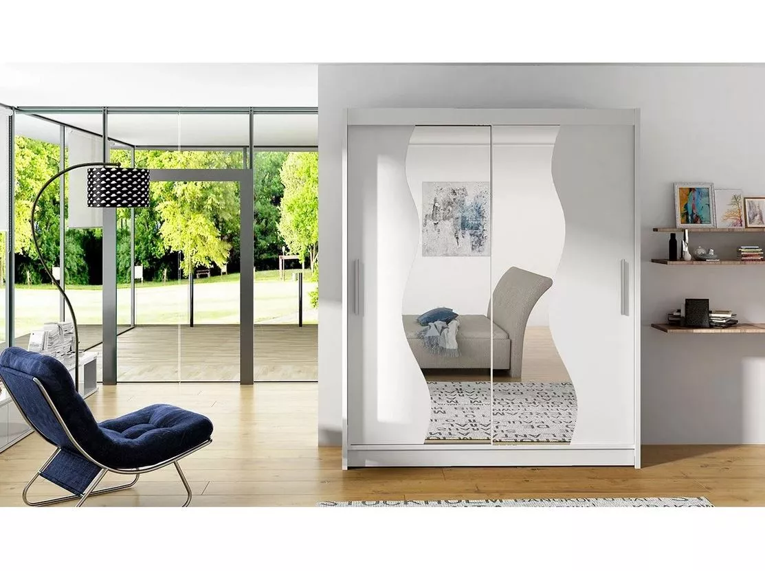 Dokonalá kombinace úložného prostoru a moderního designu – to je šatní skříň ELADIO S. Díky výšce 200 cm a šířce 150 cm pojme všechny vaše oděvy, zatímco police a šatní tyč zajistí maximální přehlednost. Zrcadlo opticky zvětší interiér a dodá mu více světla.