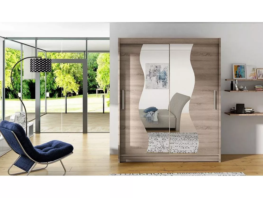 Dokonalá kombinace úložného prostoru a moderního designu – to je šatní skříň ELADIO S. Díky výšce 200 cm a šířce 150 cm pojme všechny vaše oděvy, zatímco police a šatní tyč zajistí maximální přehlednost. Zrcadlo opticky zvětší interiér a dodá mu více světla.