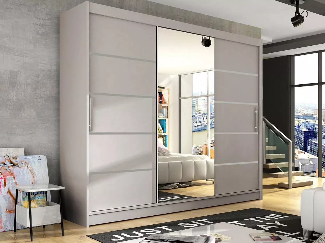 Velká šatní skříň se zrcadlem 250 cm HORTENSIA 4 - kašmír + RGB osvětlení ZDARMA