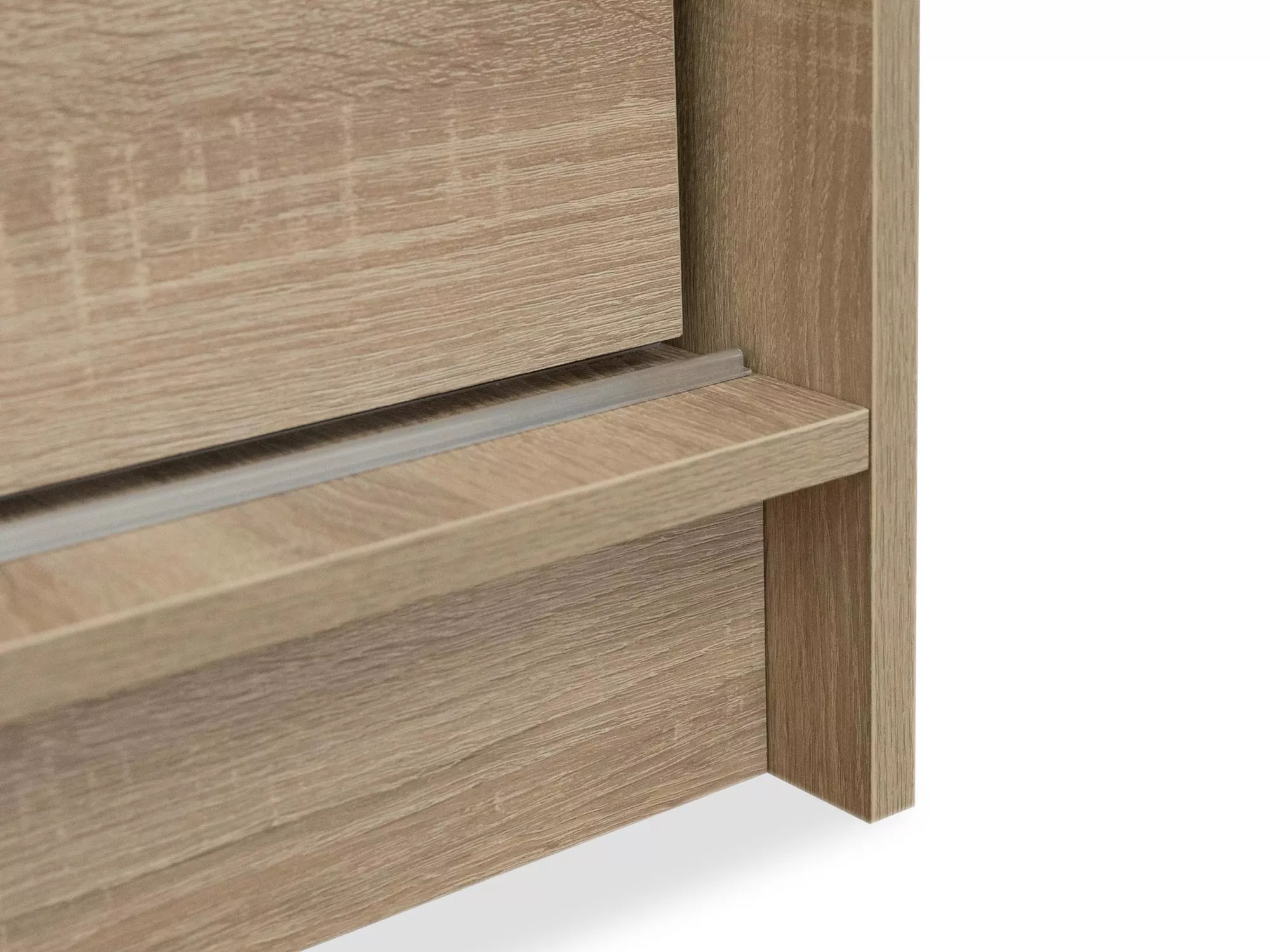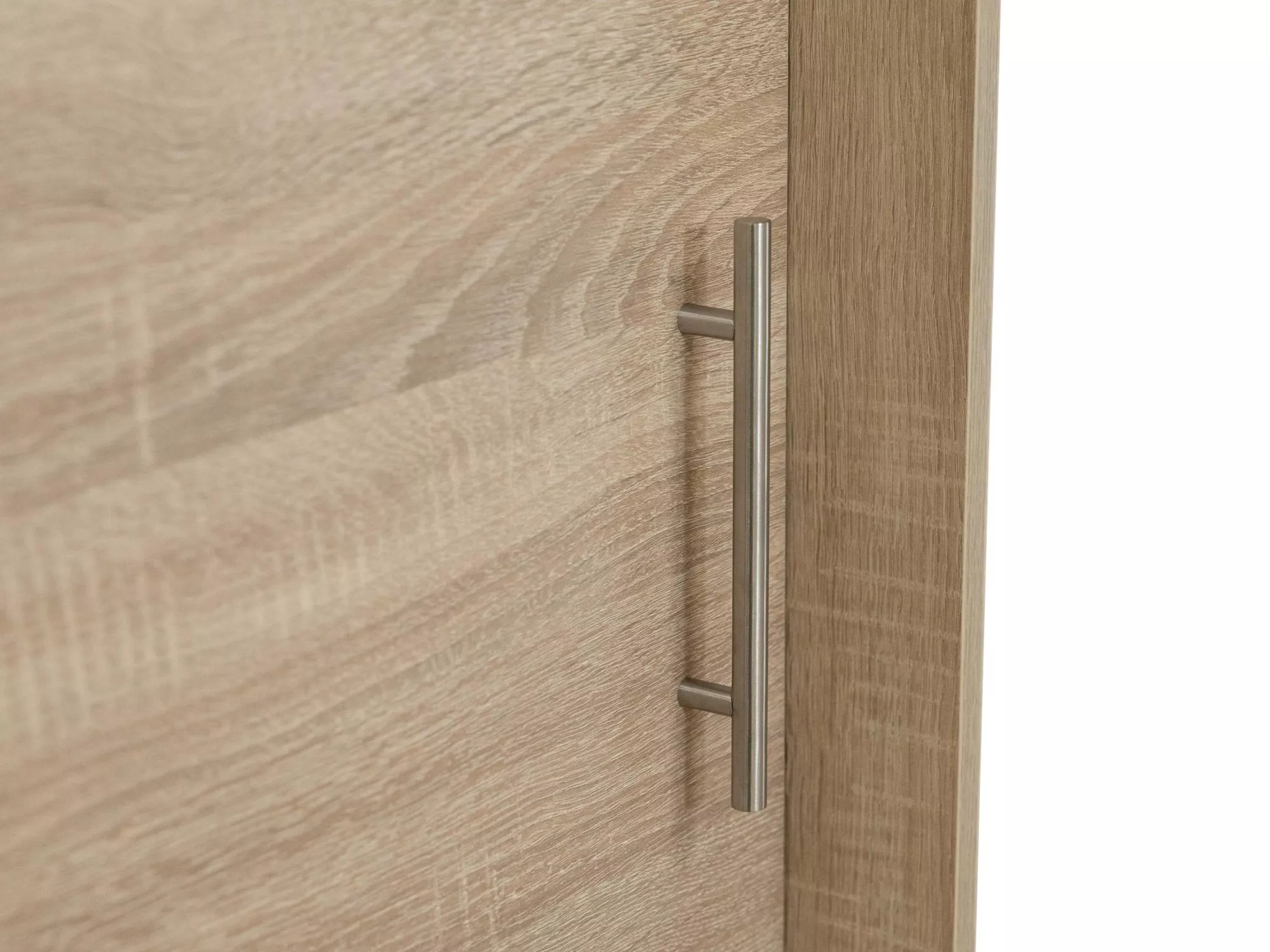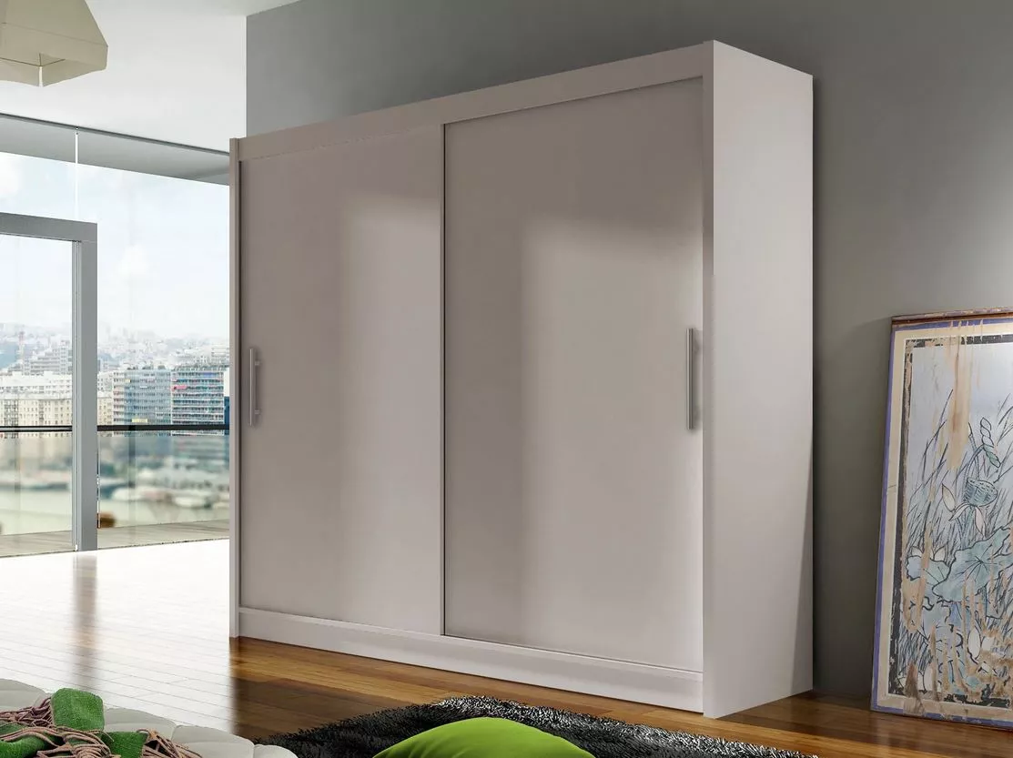 Kombinovaná šatní skříň s posuvnými dveřmi se hodí do každého moderního interiéru. Vnitřní uspořádání je tvořeno hlubokými policemi a šatní tyčí, které umožňují snadné oddělení každodenních věcí. Skříň je vybavena praktickým barevným RGB LED osvětlením, které vám usnadní hledání vašeho perfektního kousku oblečení.