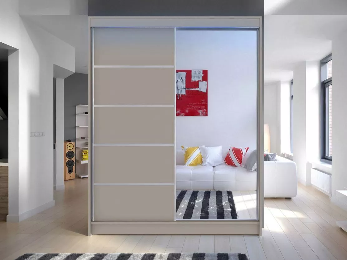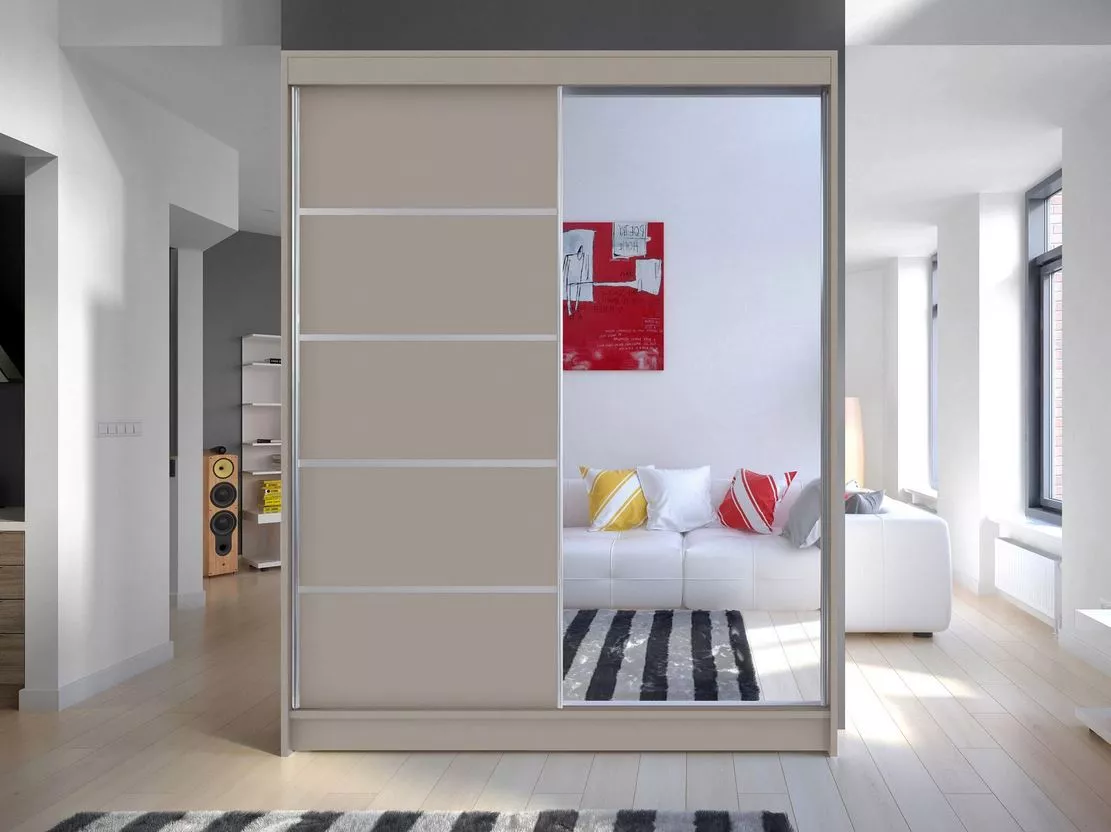 Šatní skříň 150 cm se zrcadlem a LED osvětlením PIRITU 3 - kašmír