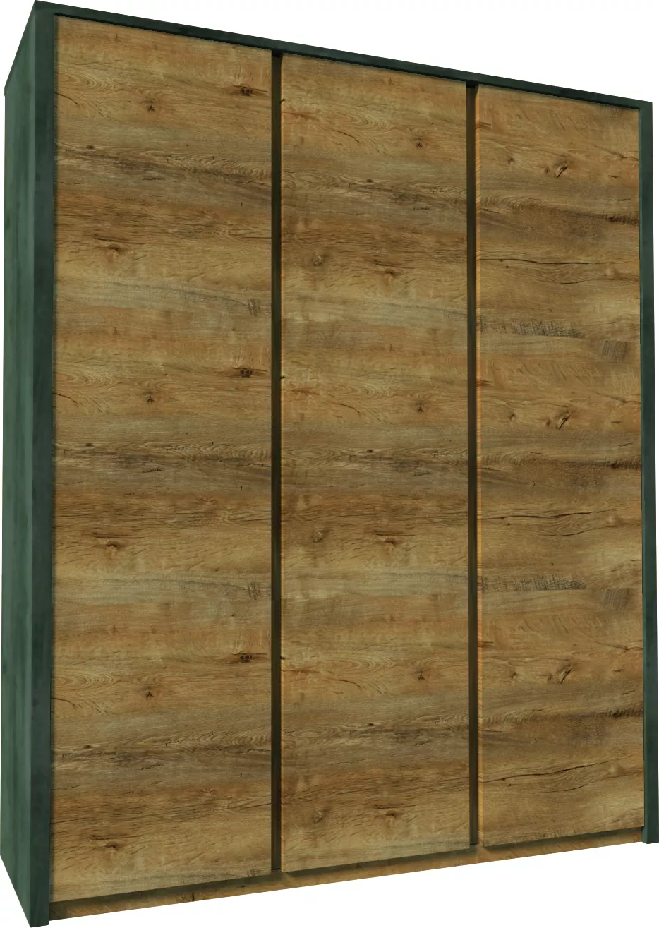 Třídveřová šatní skříň 166 cm FEREIRA - dub lefkas / šedá