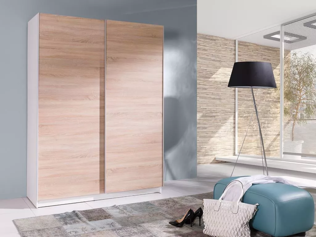 Šatní skříň 150 cm s posuvnými dveřmi WADENA 4 - bílá / dub sonoma