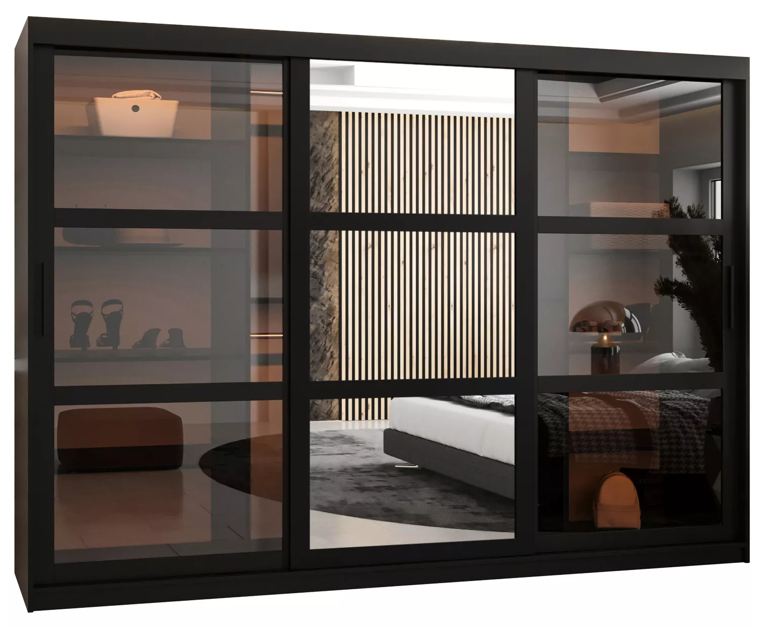 - materiál dveří: kouřové sklo + MDF o hloubce 2 cm a šířce 6,5 cm