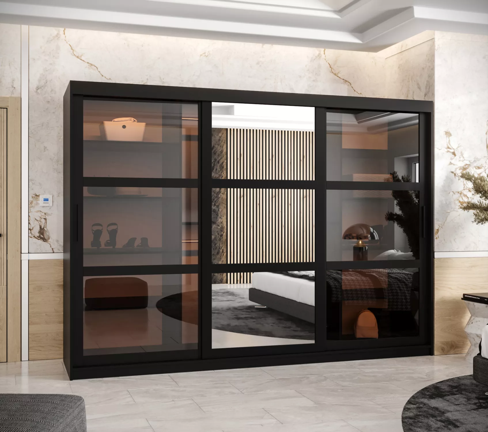 VÝPRODEJ - Šatní skříň KATIE 1 - 250 cm, černá / černá