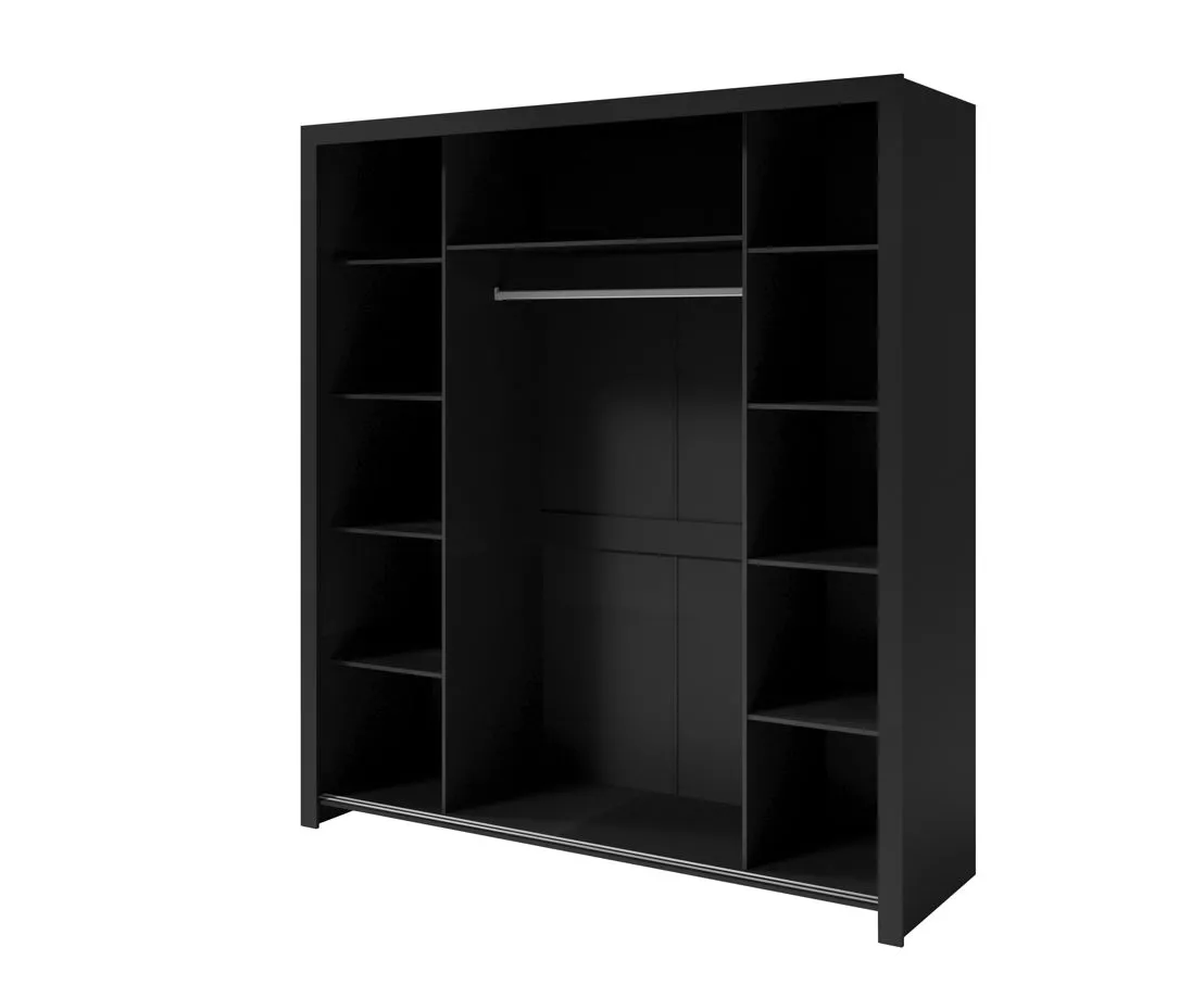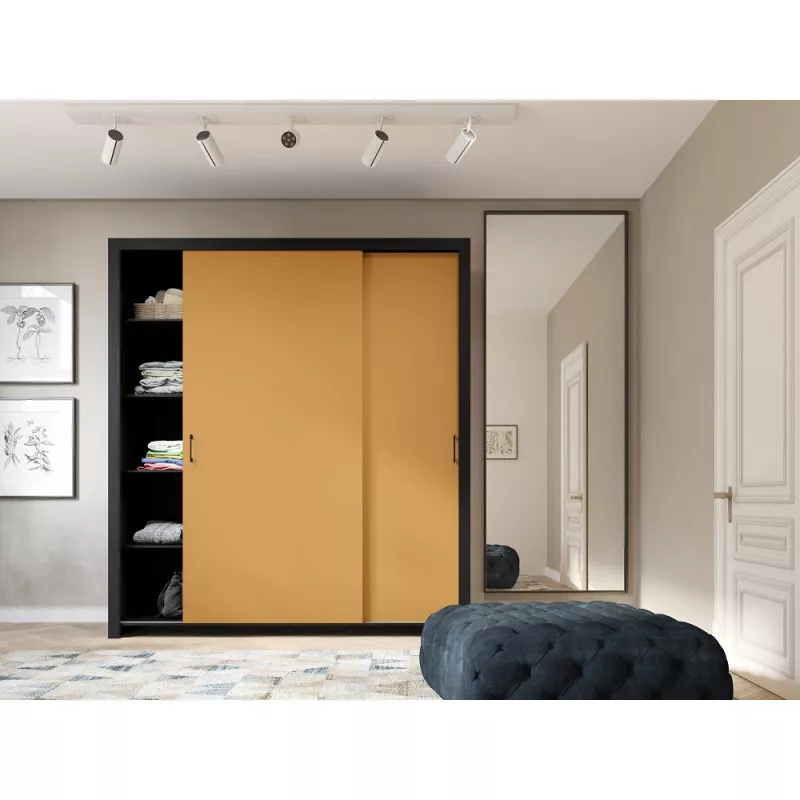 Šatní skříň s posuvnými dveřmi HAYWARD skvěle doplní každý moderní interiér svou elegantní a lehkou estetikou. Precizní zpracování designu klade důraz na funkčnost i praktičnost. Vnitřní uspořádání nabízí prostorné police pro přehledné uložení oblečení a šatní tyč, která unese i větší množství oděvů. Díky chytrému řešení prostoru je ideální volbou pro ty, kteří hledají stylové a zároveň praktické úložné řešení.