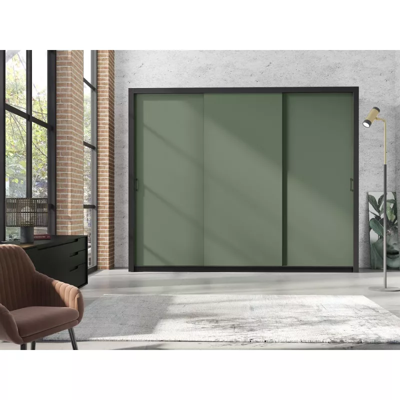 Šatní skříň 255 cm s posuvnými dveřmi HAYWARD - zelená / černé úchyty