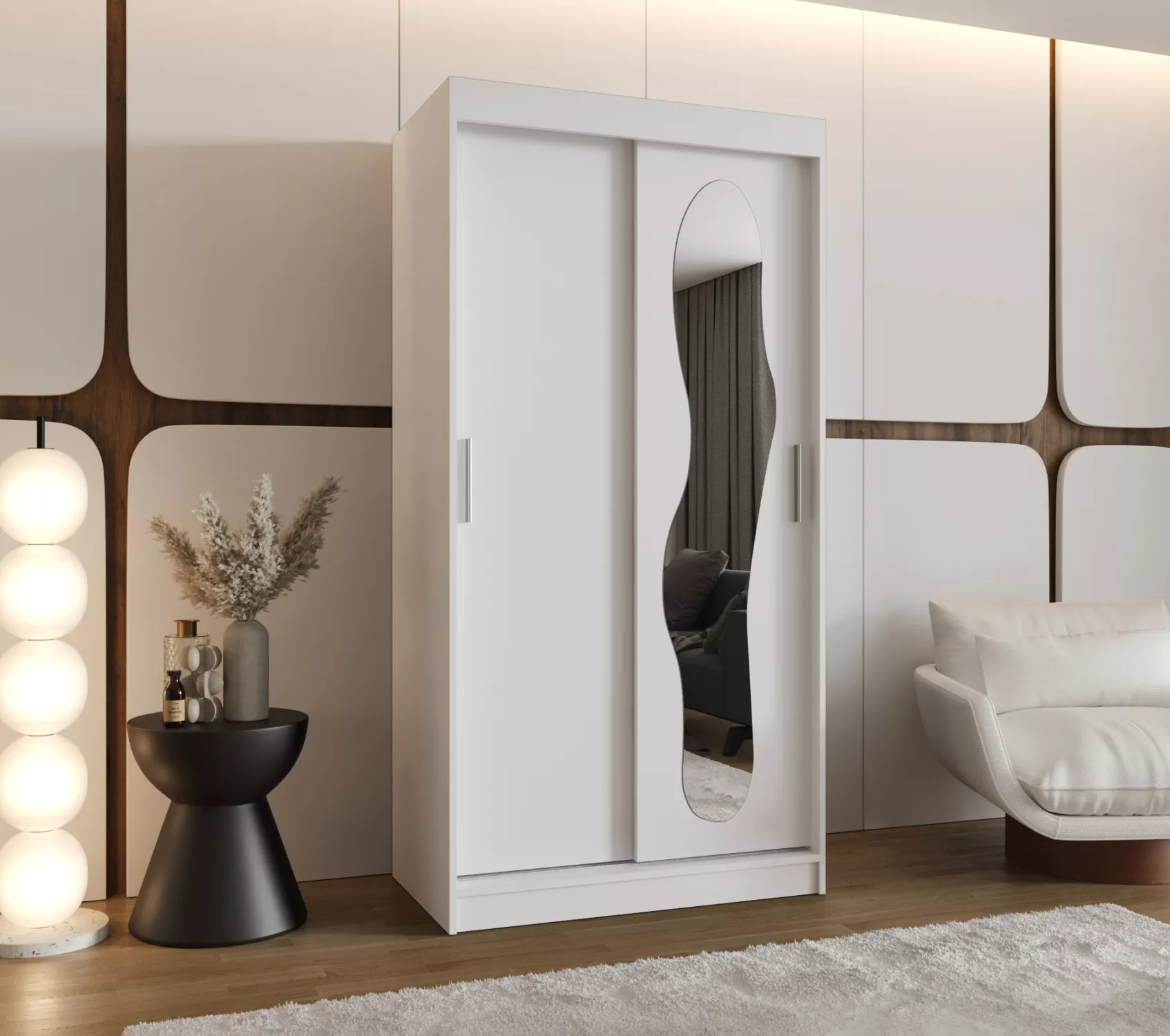 Šatní skříň 100 cm BEYZA se zrcadlem - bílá