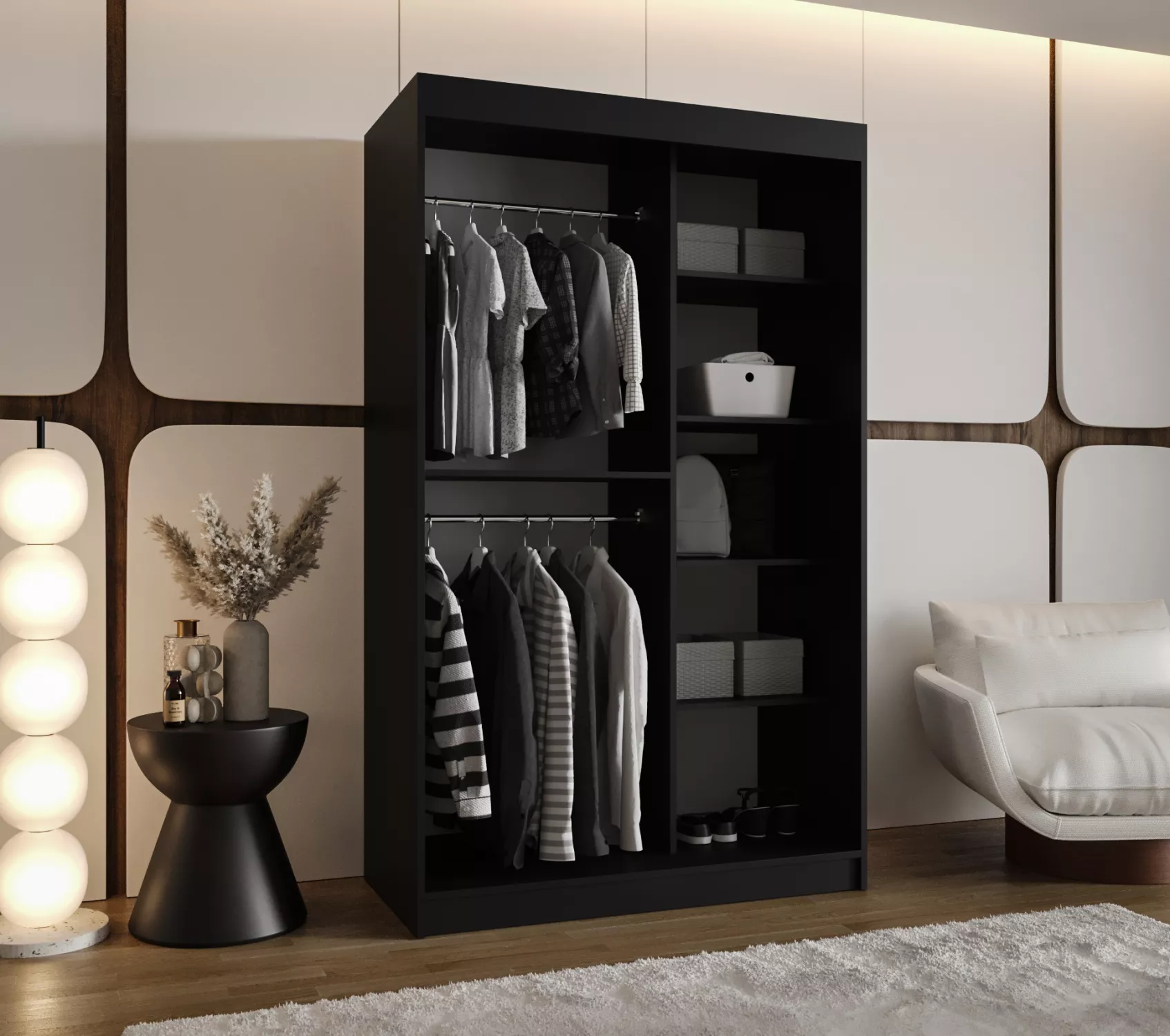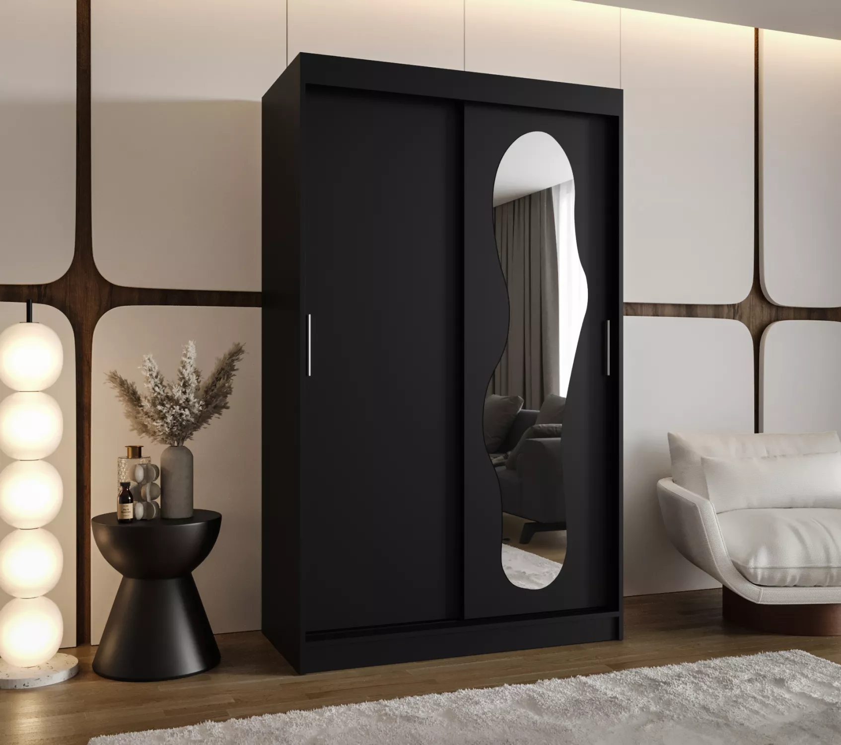 Šatní skříň 120 cm BEYZA se zrcadlem - černá