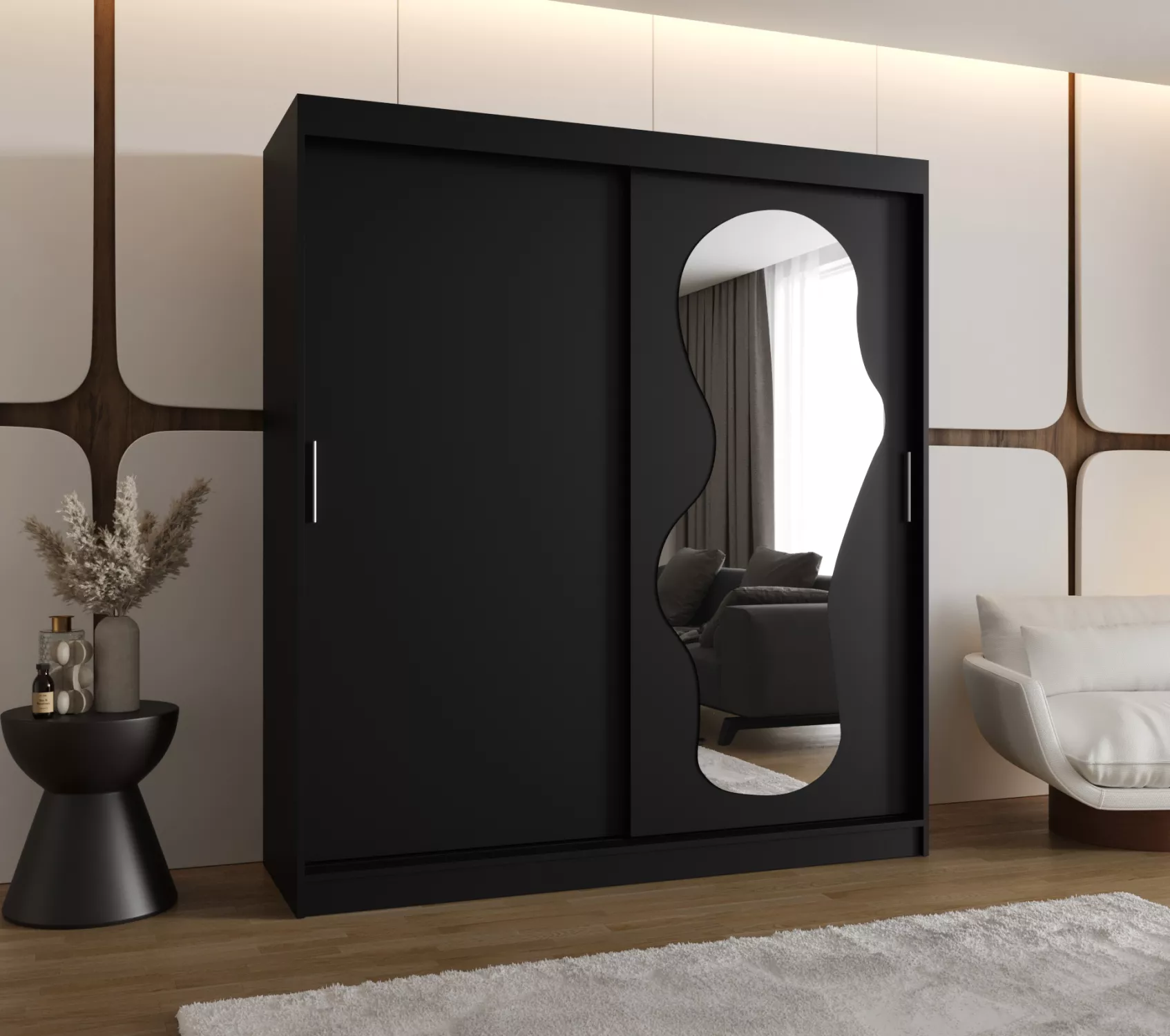 Šatní skříň 180 cm BEYZA se zrcadlem - černá