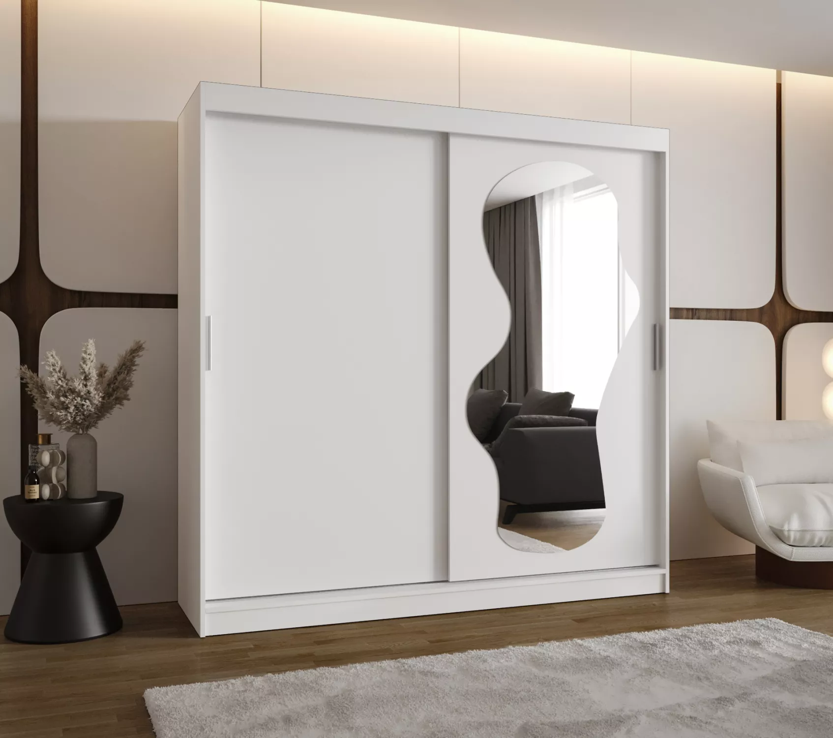 Šatní skříň 200 cm BEYZA se zrcadlem - bílá