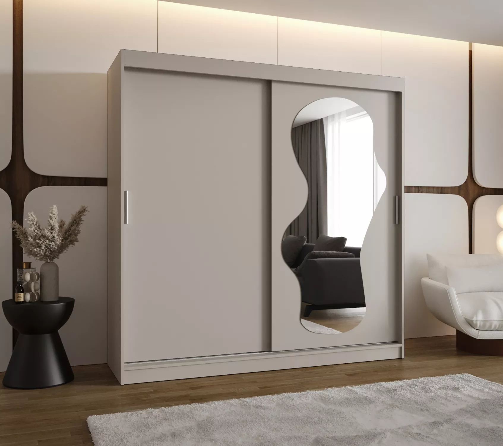 Šatní skříň 200 cm BEYZA se zrcadlem - kašmírová