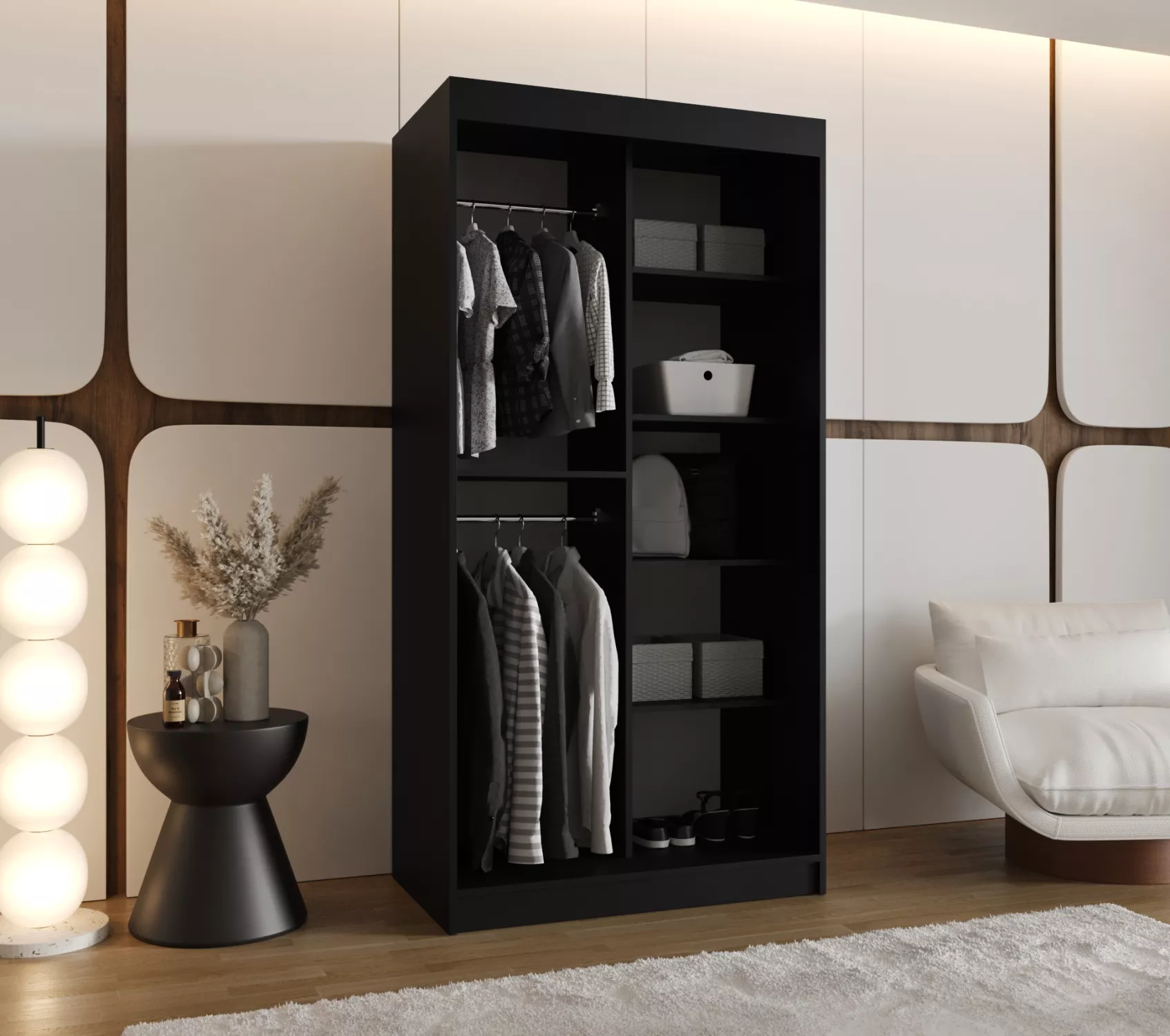 Šatní skříň 100 cm CEYDA je prostorným kusem nábytku, který zajistí praktické uspořádání oblečení a doplňků. Zrcadlo opticky zvětší prostor.