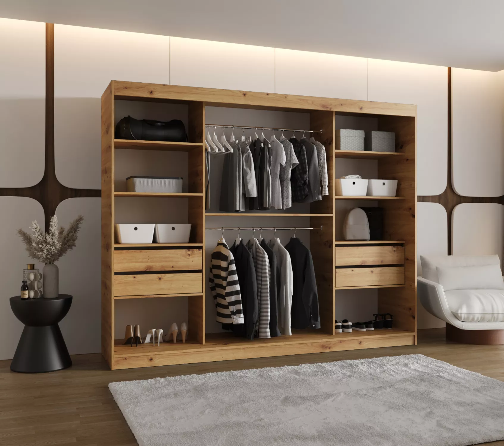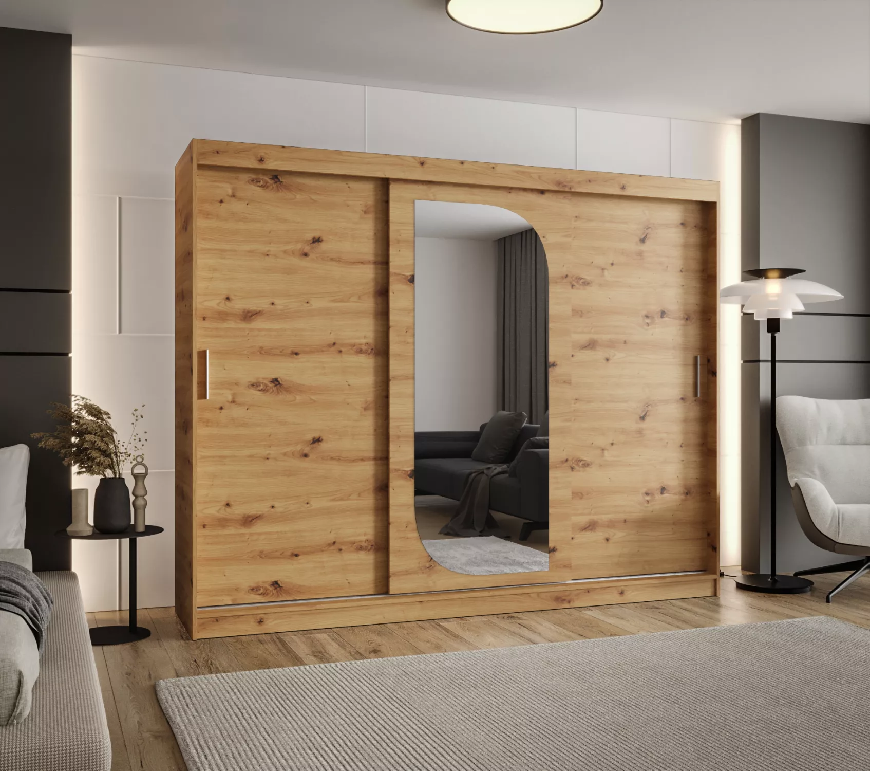 Šatní skříň 250 cm CEYDA je prostorným kusem nábytku, který zajistí praktické uspořádání oblečení a doplňků. Zrcadlo opticky zvětší prostor.