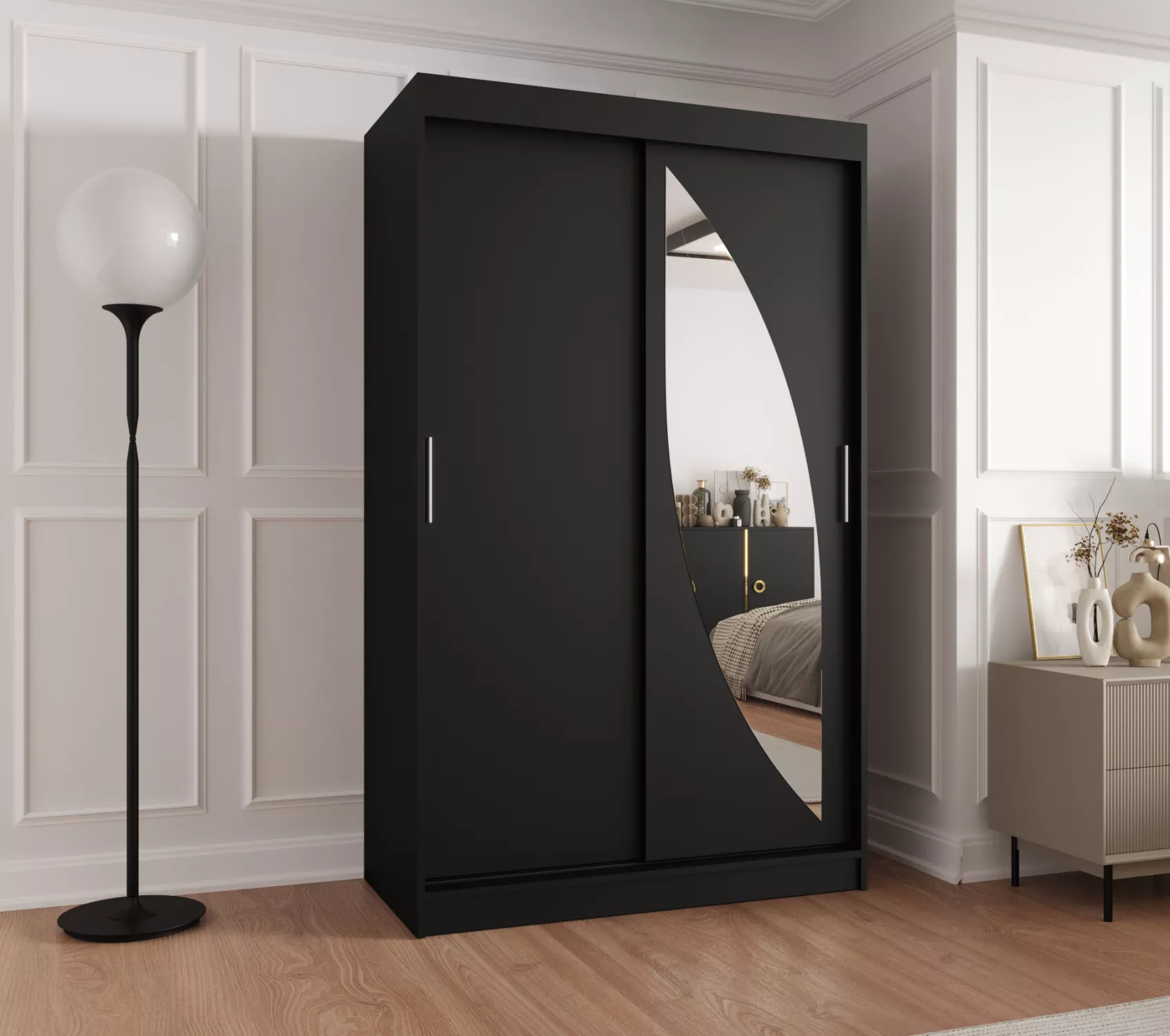 Šatní skříň 120 cm SUDENA s posuvnými dveřmi - černá
