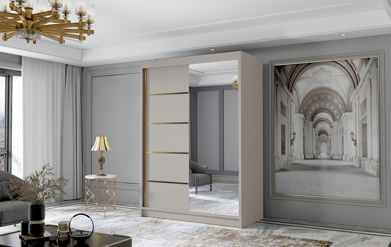 Šatní skříň 120 cm SUDENA s posuvnými dveřmi - kašmírová