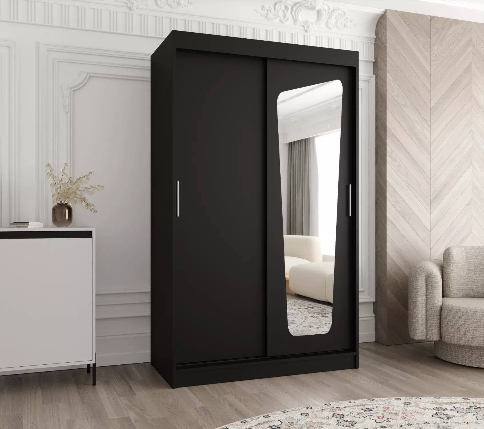 Šatní skříň 120 cm ZAMIRA se zrcadlem - černá