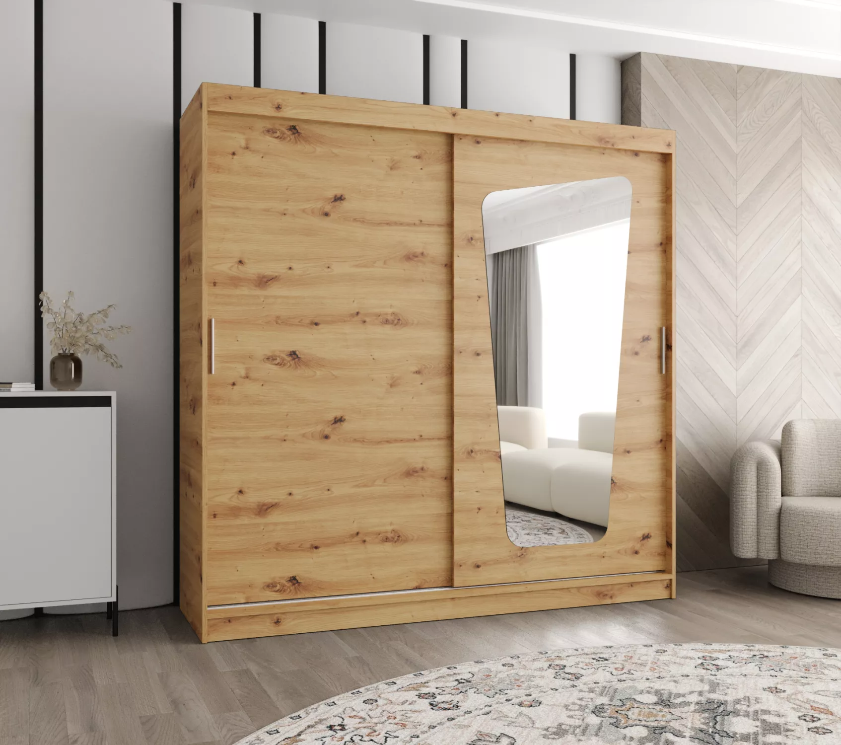 Šatní skříň 200 cm ZAMIRA se zrcadlem - dub artisan