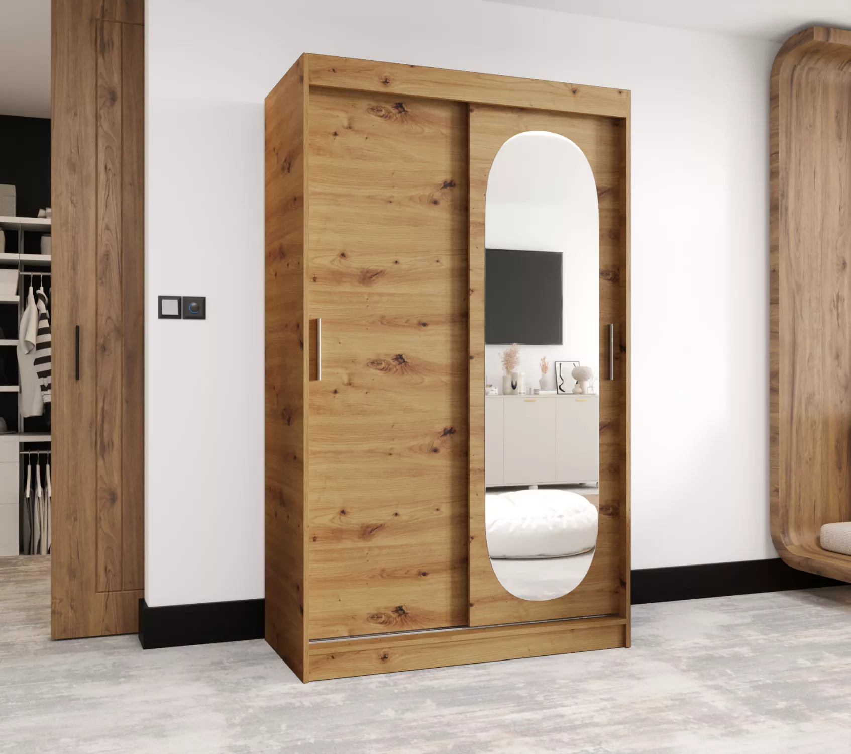 Šatní skříň 120 cm BEREN se zrcadlem - dub artisan