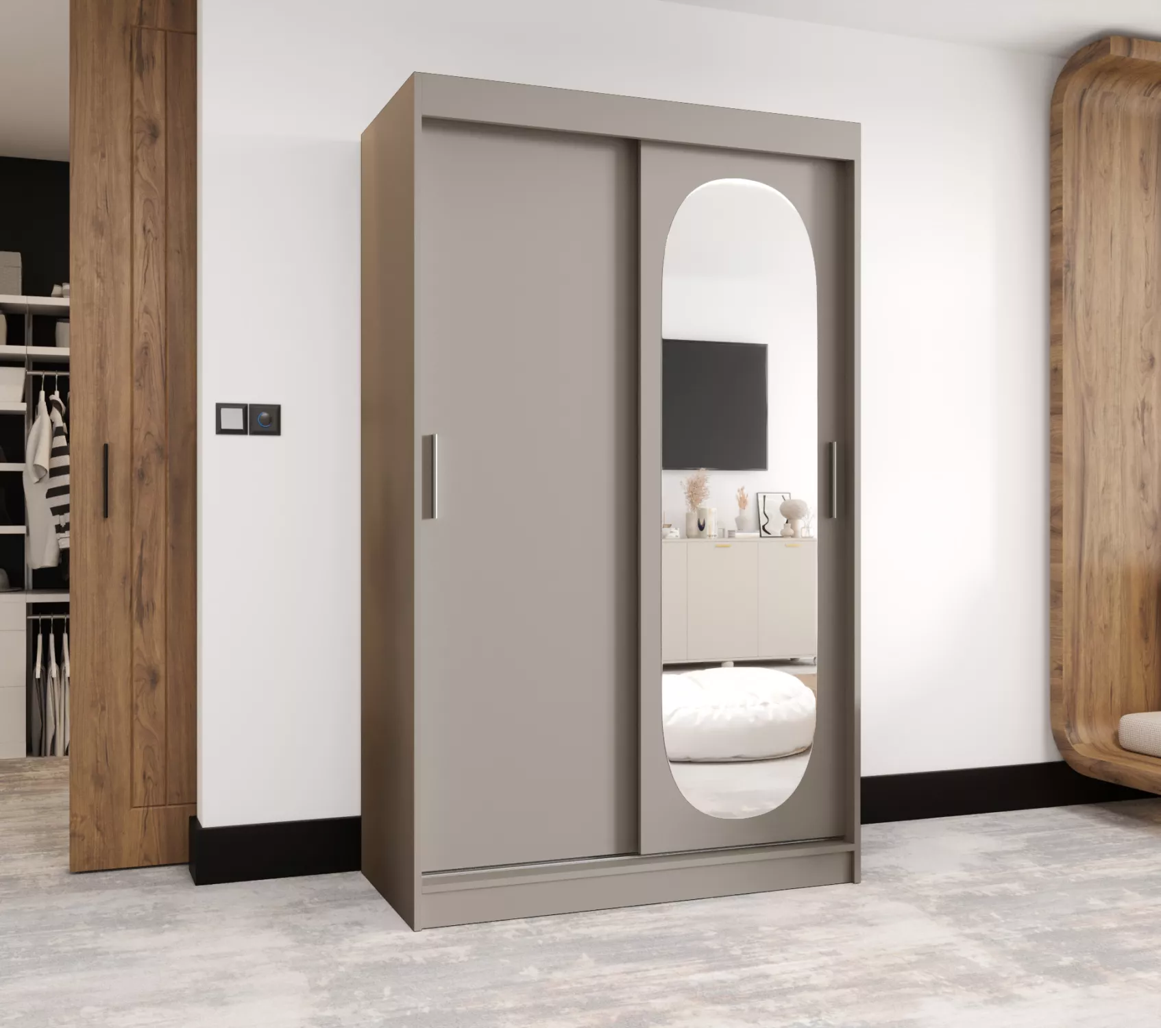 Šatní skříň 120 cm BEREN se zrcadlem - kašmírová