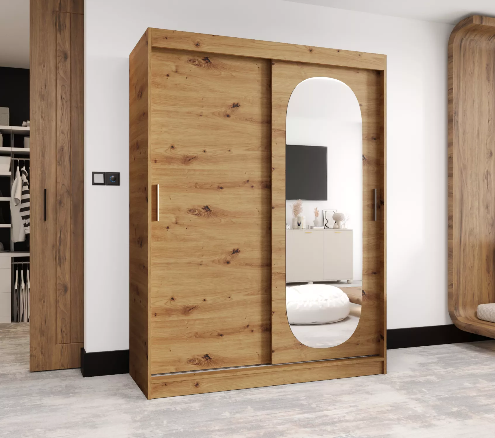 Šatní skříň 150 cm BEREN se zrcadlem - dub artisan