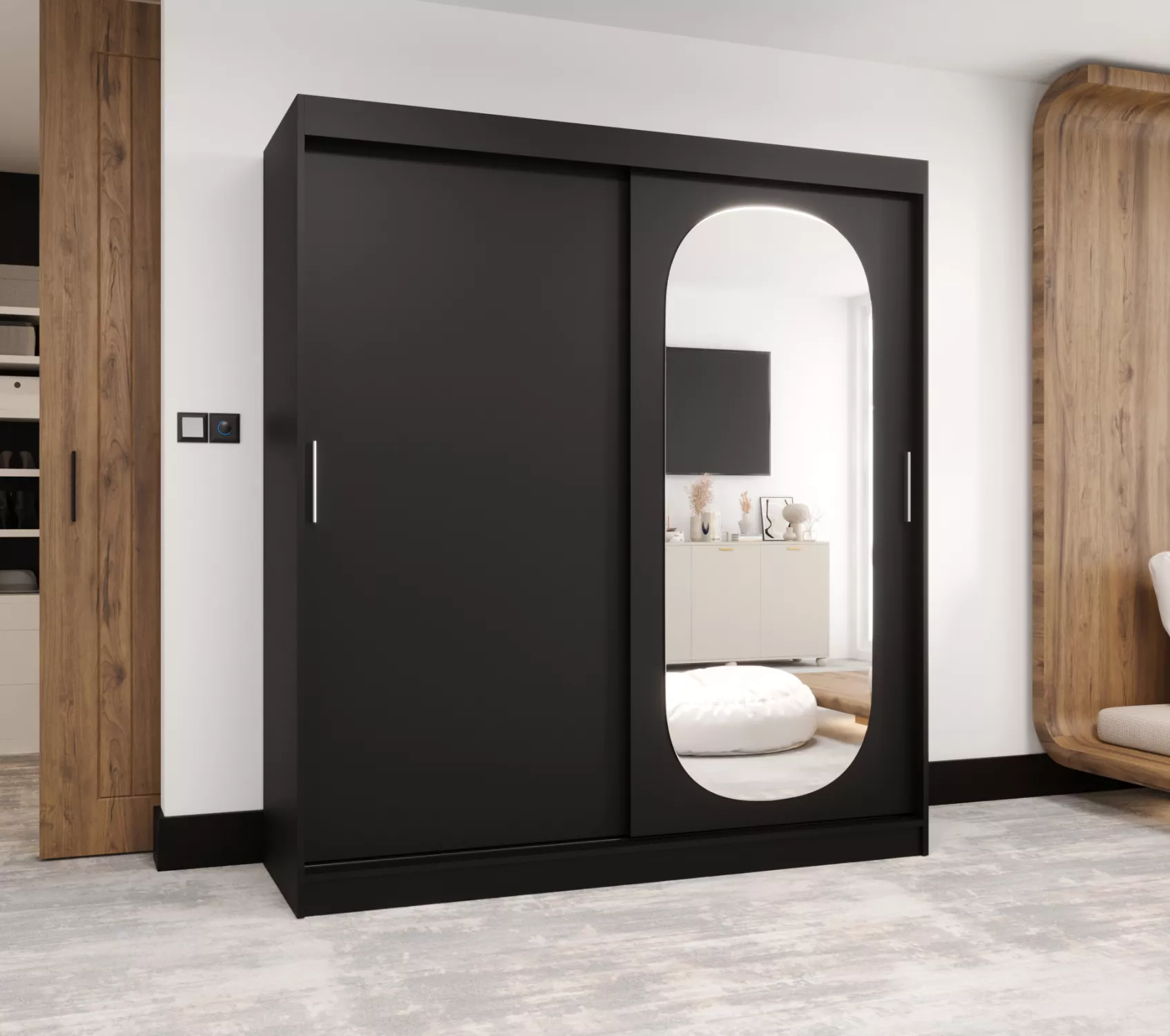 Šatní skříň 180 cm BEREN se zrcadlem - černá