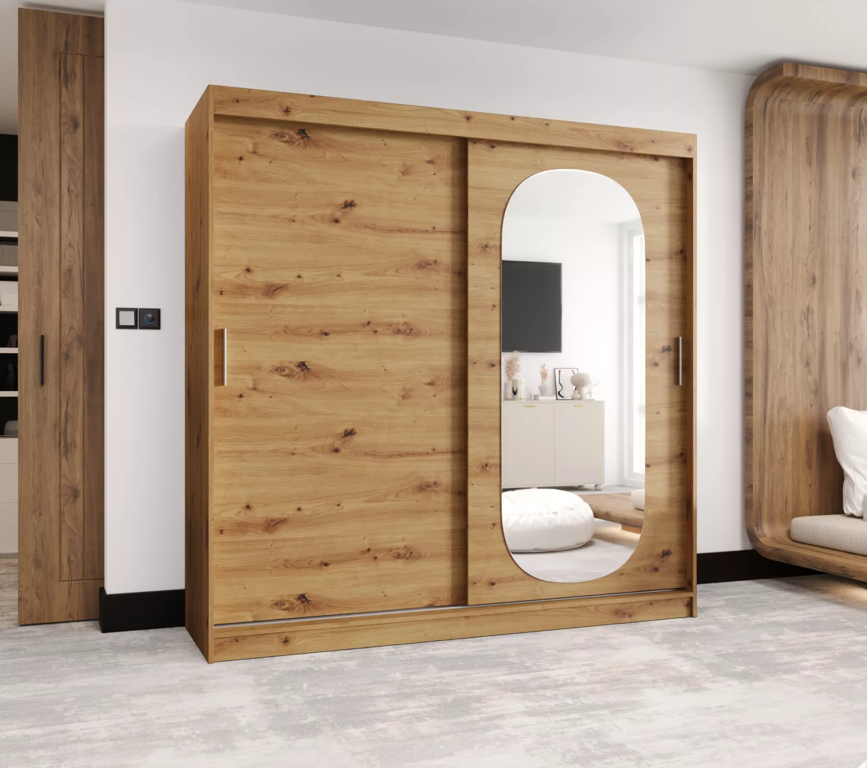 Šatní skříň 200 cm BEREN se zrcadlem - dub artisan