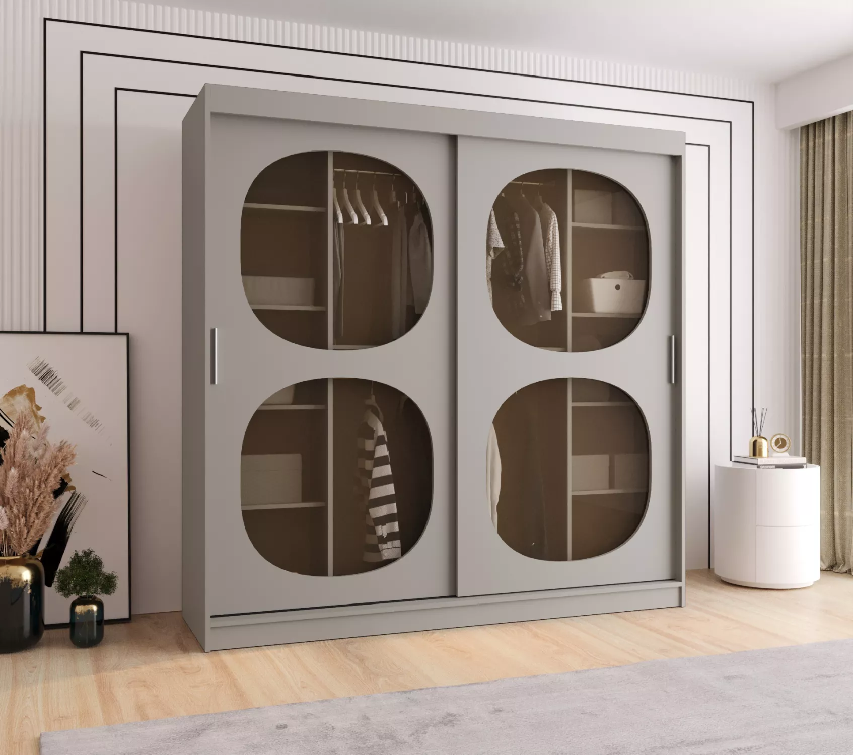 Prosklená šatní skříň 200 cm DEFNE - kašmírová