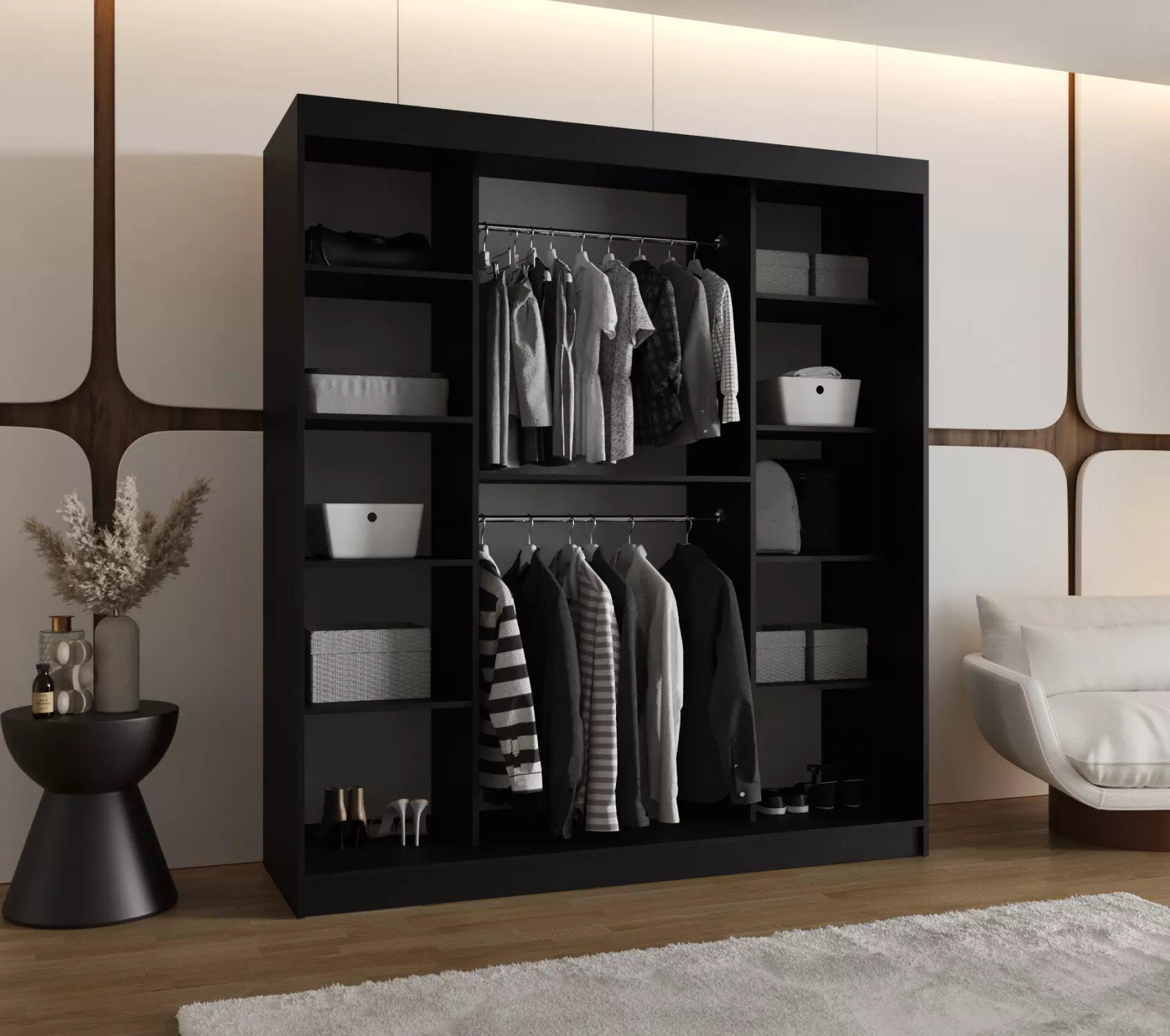 Prosklená šatní skříň 180 cm RUMEYA - černá