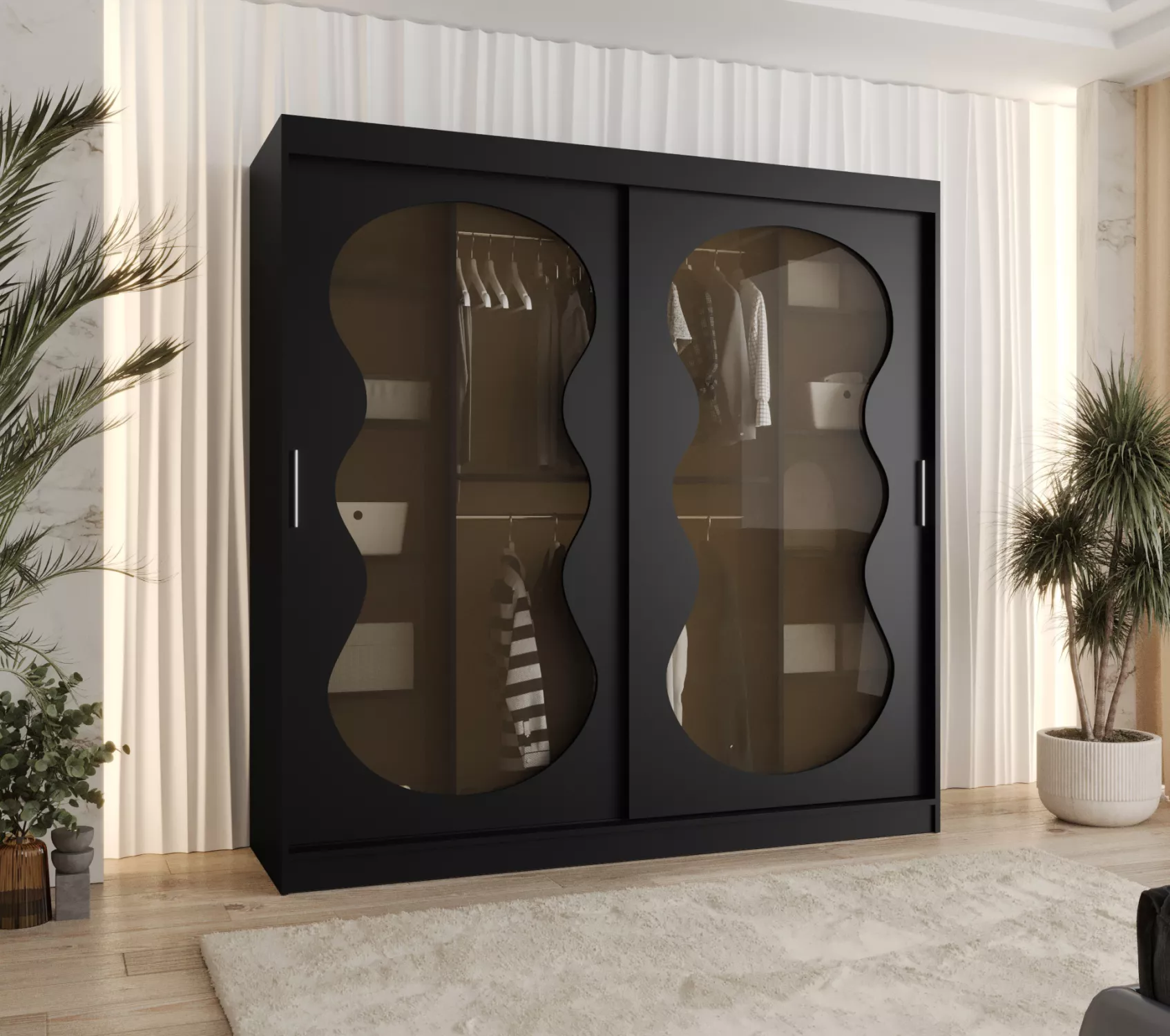 Prosklená šatní skříň 200 cm RUMEYA - černá