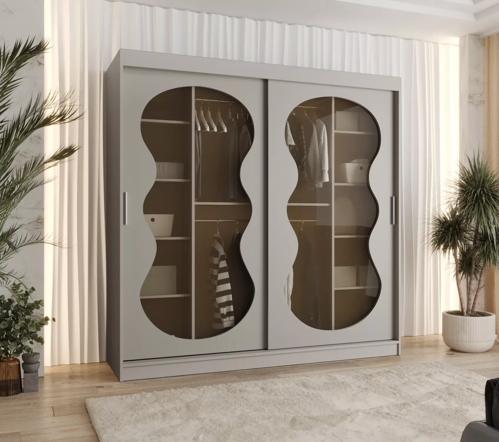 Prosklená šatní skříň 200 cm RUMEYA - kašmírová