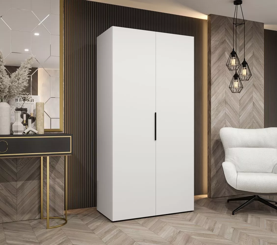 Šatní skříň 100 cm TUANA se díky jednoduchému modernímu designu a univerzálnímu provedení hodí téměř do jakéhokoli interiéru. Vnitřní prostor tvoří 1 police a šatní tyč.
