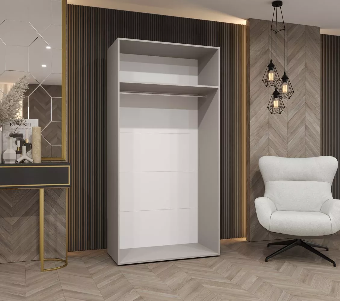 Šatní skříň 100 cm TUANA se díky jednoduchému modernímu designu a univerzálnímu provedení hodí téměř do jakéhokoli interiéru. Vnitřní prostor tvoří 1 police a šatní tyč.