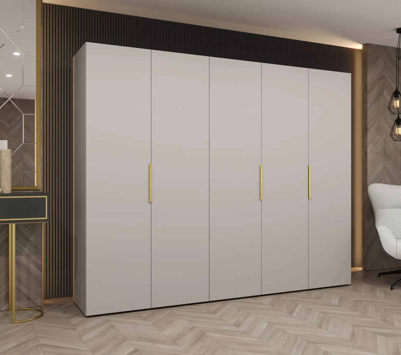 Šatní skříň 250 cm TUANA - kašmírová / zlatá