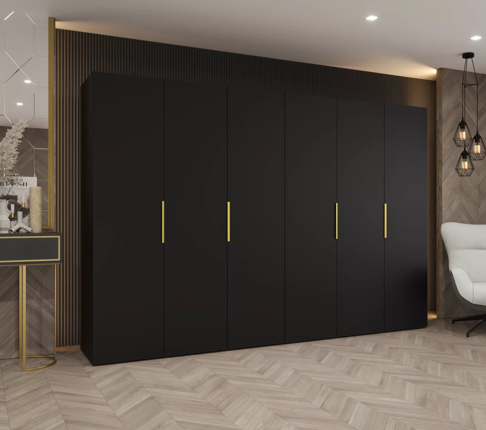Šatní skříň 300 cm TUANA - černá / zlatá
