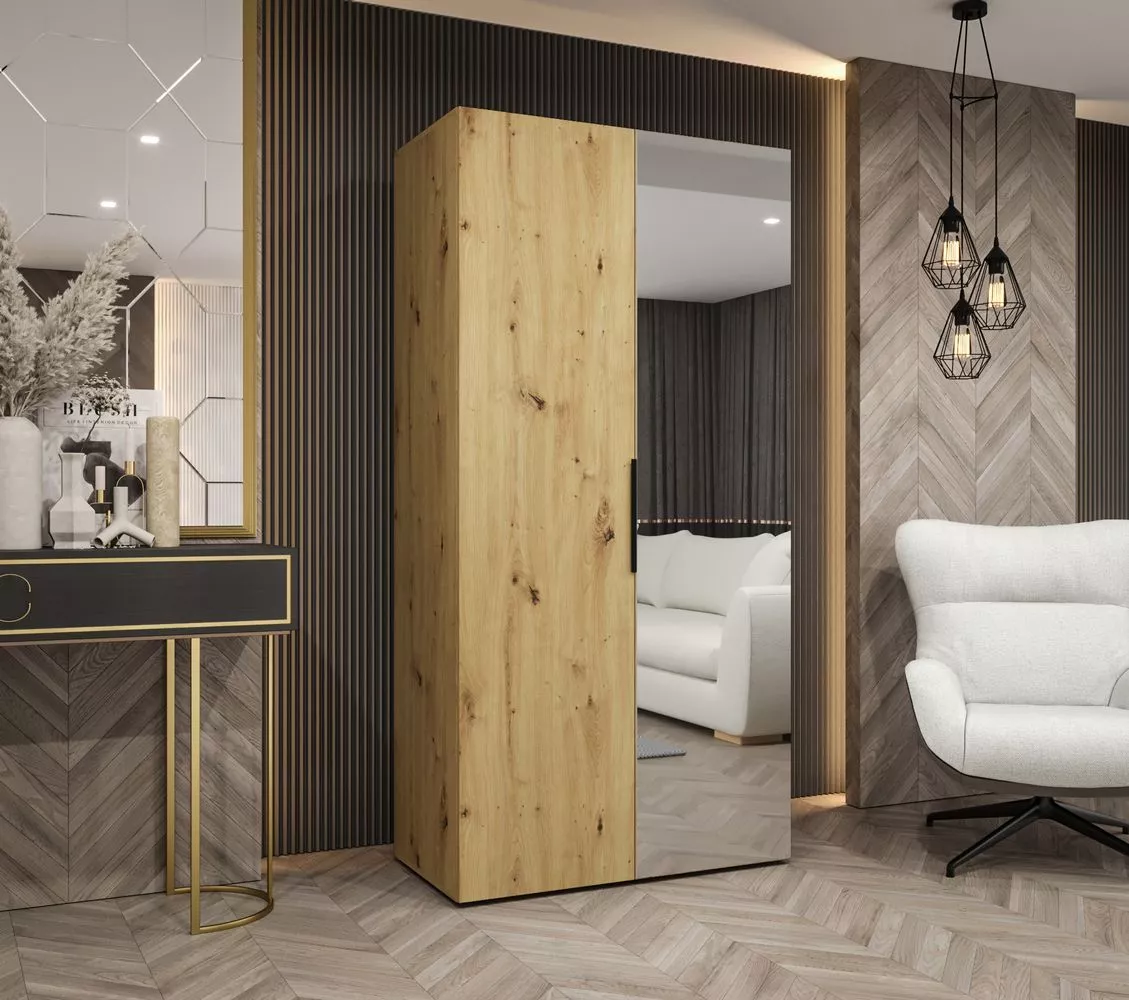 Šatní skříň 100 cm KUBRA představuje perfektní řešení úložného prostoru pro ložnice či šatny. Zrcadlo opticky zvětší a prosvětlí interiér.