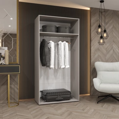 Šatní skříň 100 cm KUBRA představuje perfektní řešení úložného prostoru pro ložnice či šatny. Zrcadlo opticky zvětší a prosvětlí interiér.