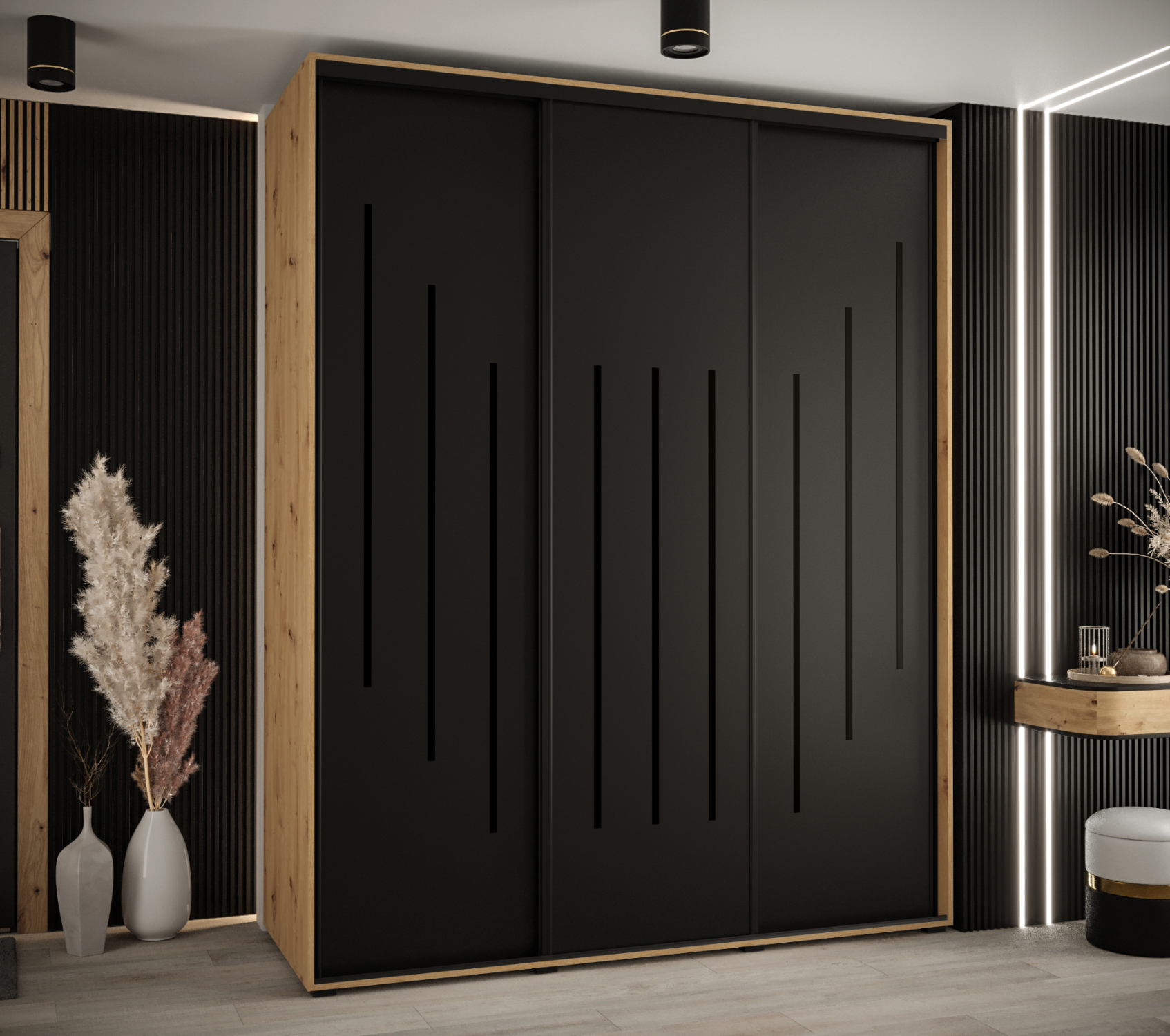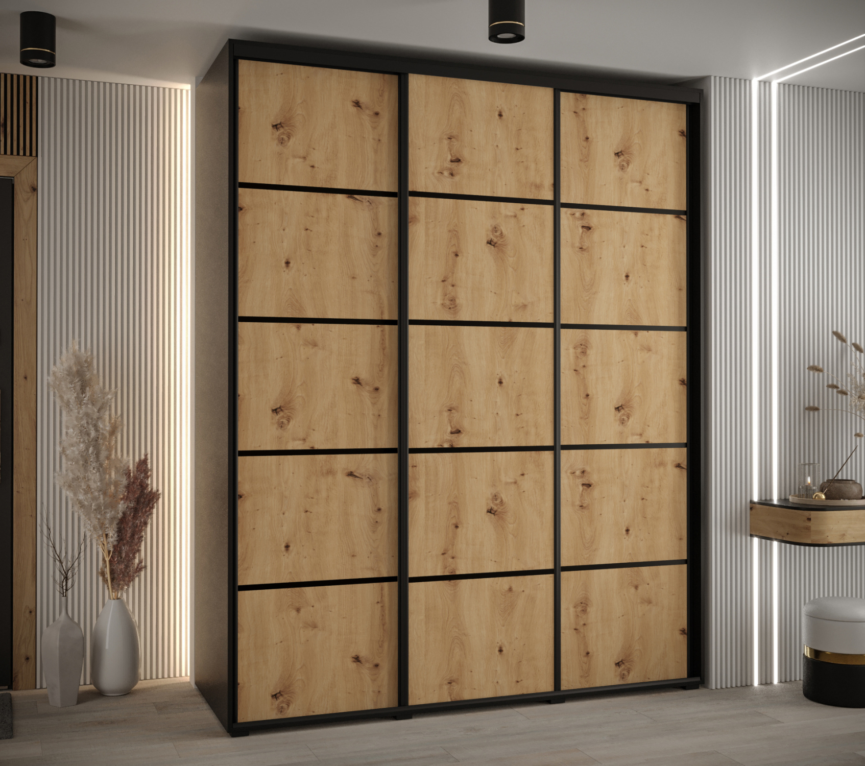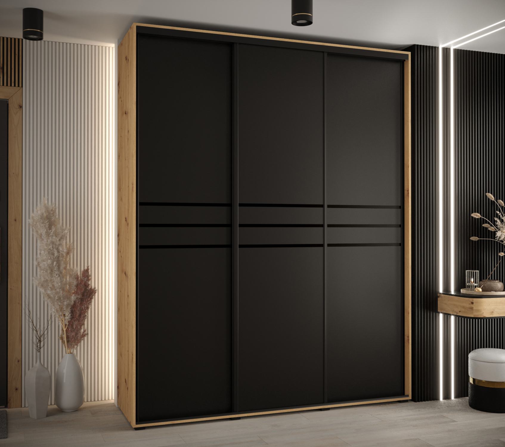 Šatní skříň 200 cm KUBRA - kašmírová / černá