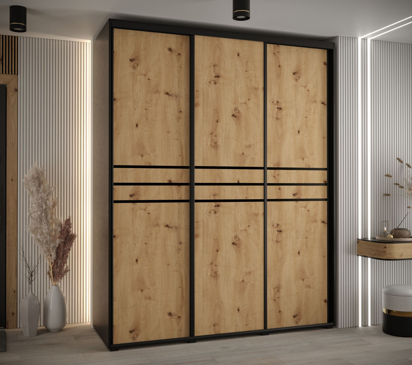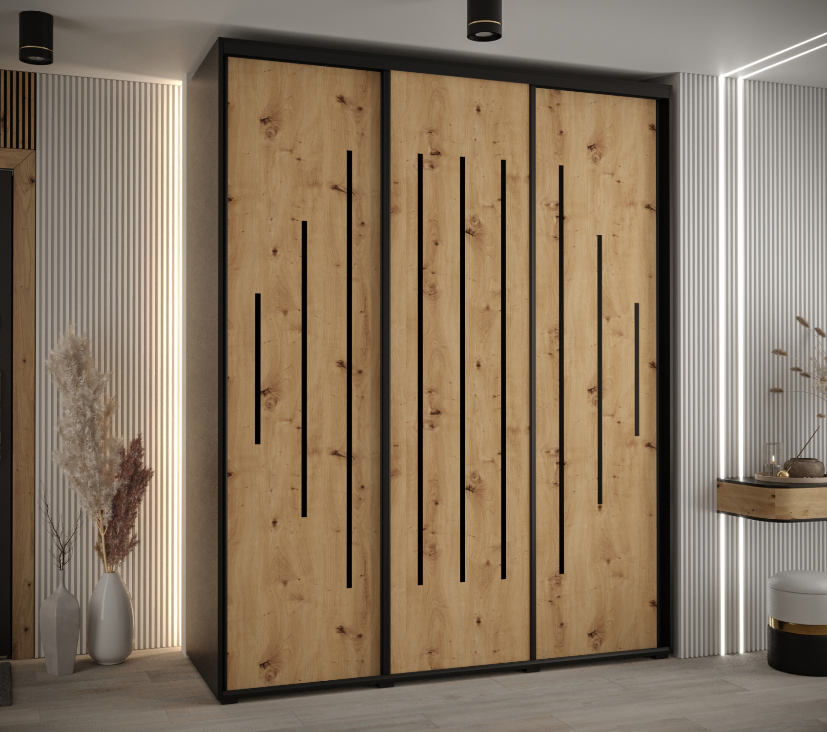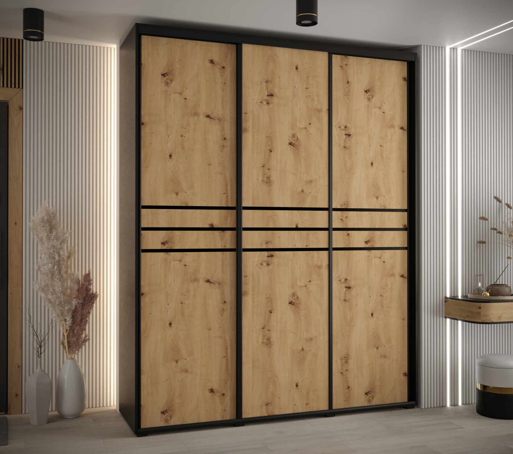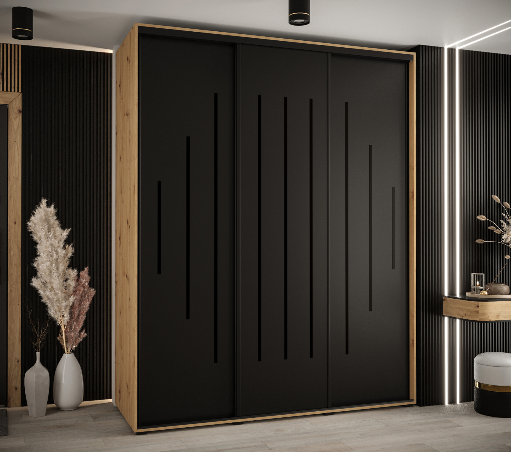 Šatní skříň 200 cm KUBRA - kašmírová / černá