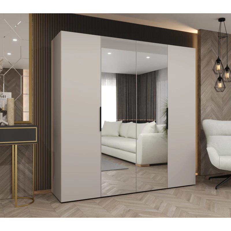 Šatní skříň 200 cm KUBRA představuje perfektní řešení úložného prostoru pro ložnice či šatny. Zrcadla opticky zvětší a prosvětlí interiér.