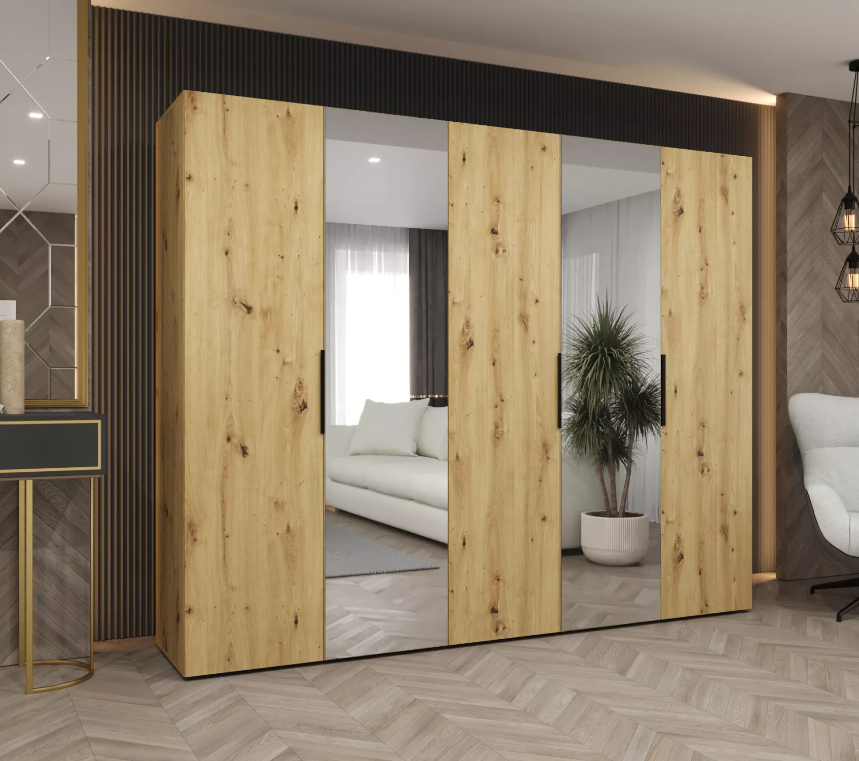 Šatní skříň 250 cm KUBRA - dub artisan / černá