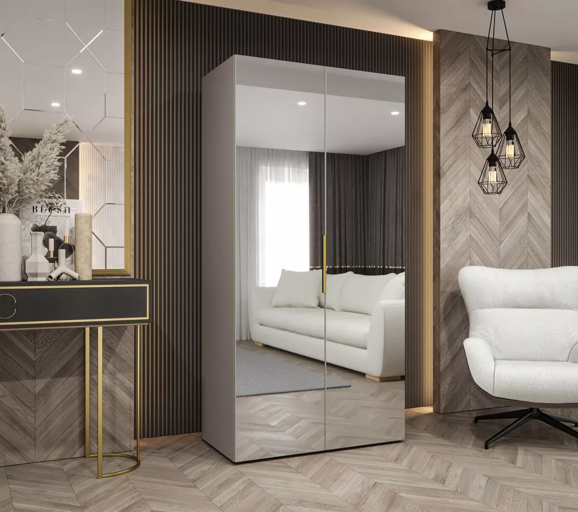 Zrcadlová šatní skříň 100 cm RABIA - kašmírová / zlatá