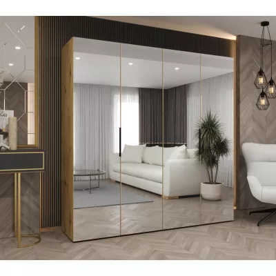 Zrcadlová šatní skříň 200 cm RABIA - dub artisan / černá